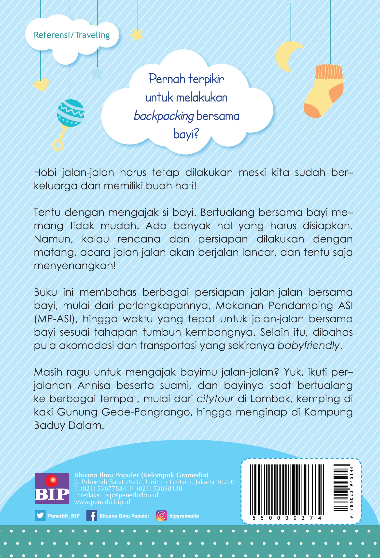Jadi, masih ragu untuk mengajak si bayi jalan-jalan? Yuk, ikuti perjalanan Annisa beserta suami dan bayinya saat bertualang ke berbagai tempat, mulai dari citytour di Lombok, kemping di kaki Gunung Gede-Pangrango, hingga menetap di Kampung Baduy Dalam.