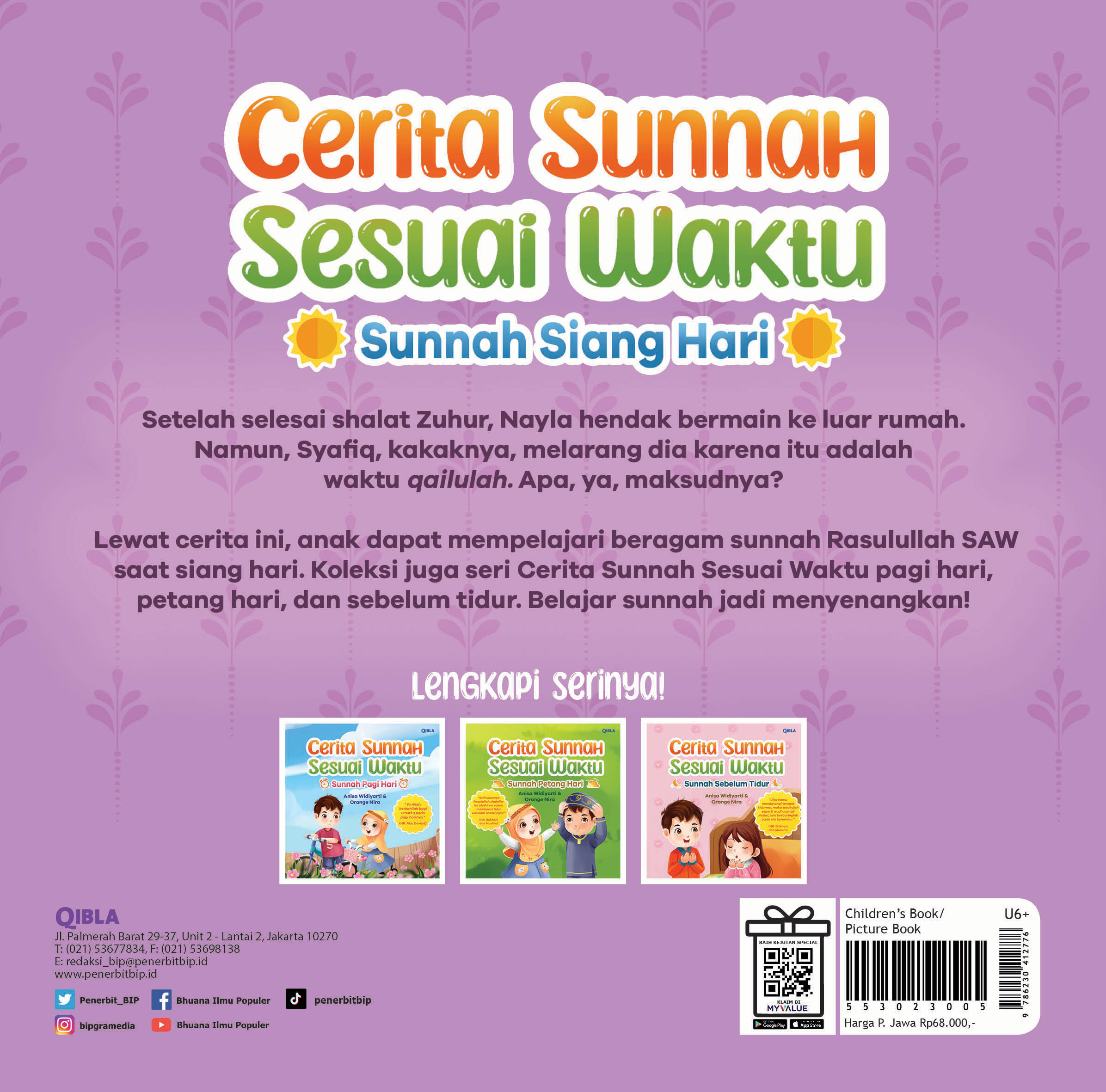 Lewat cerita ini, anak dapat mempelajari beragam sunnah Rasulullah SAW saat siang hari. Koleksi juga seri Cerita Sunnah Sesuai Waktu pagi hari, petang hari, dan sebelum tidur. Belajar sunnah jadi menyenangkan!