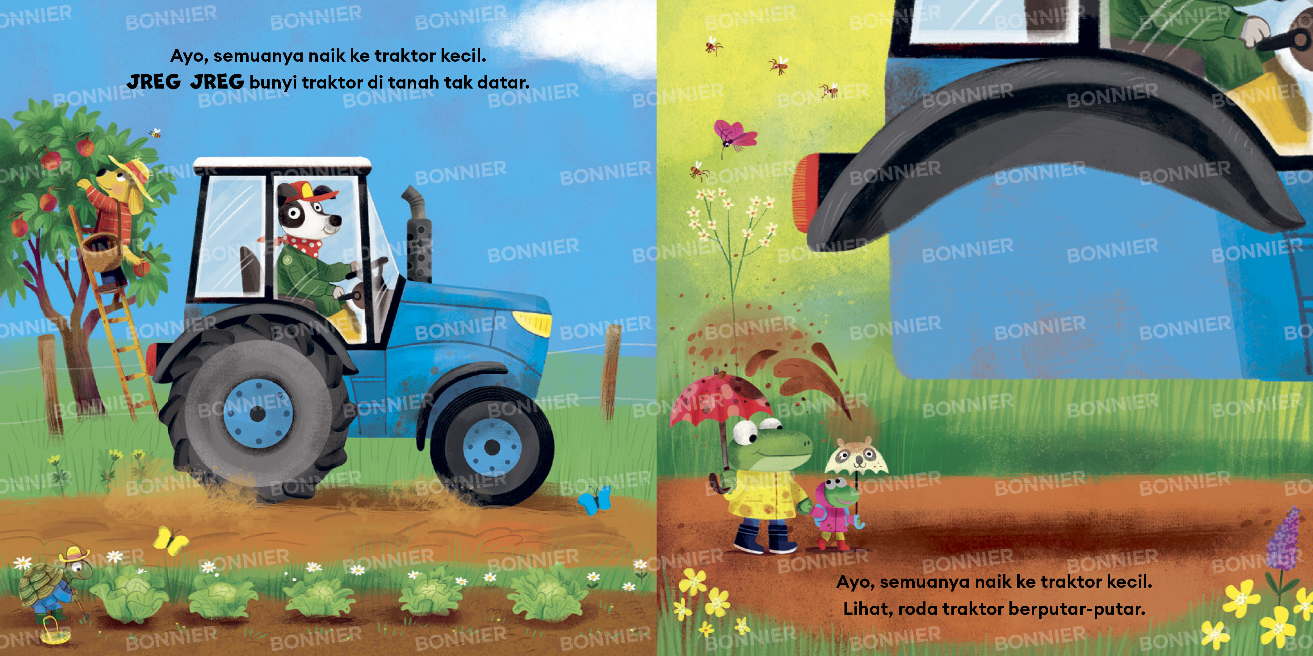 Ayo, jalan-jalan naik Traktor bersama karakter hewan lucu.