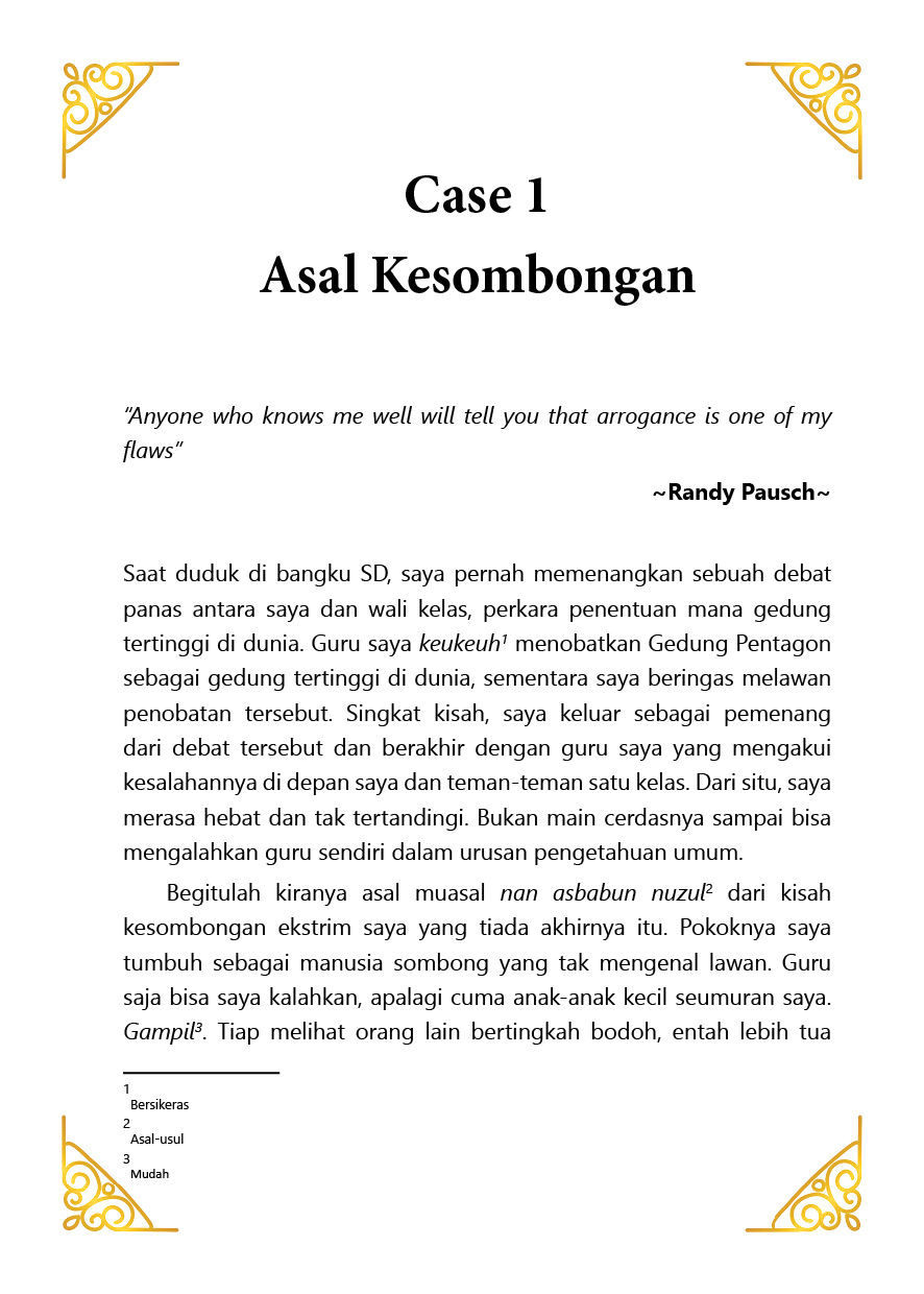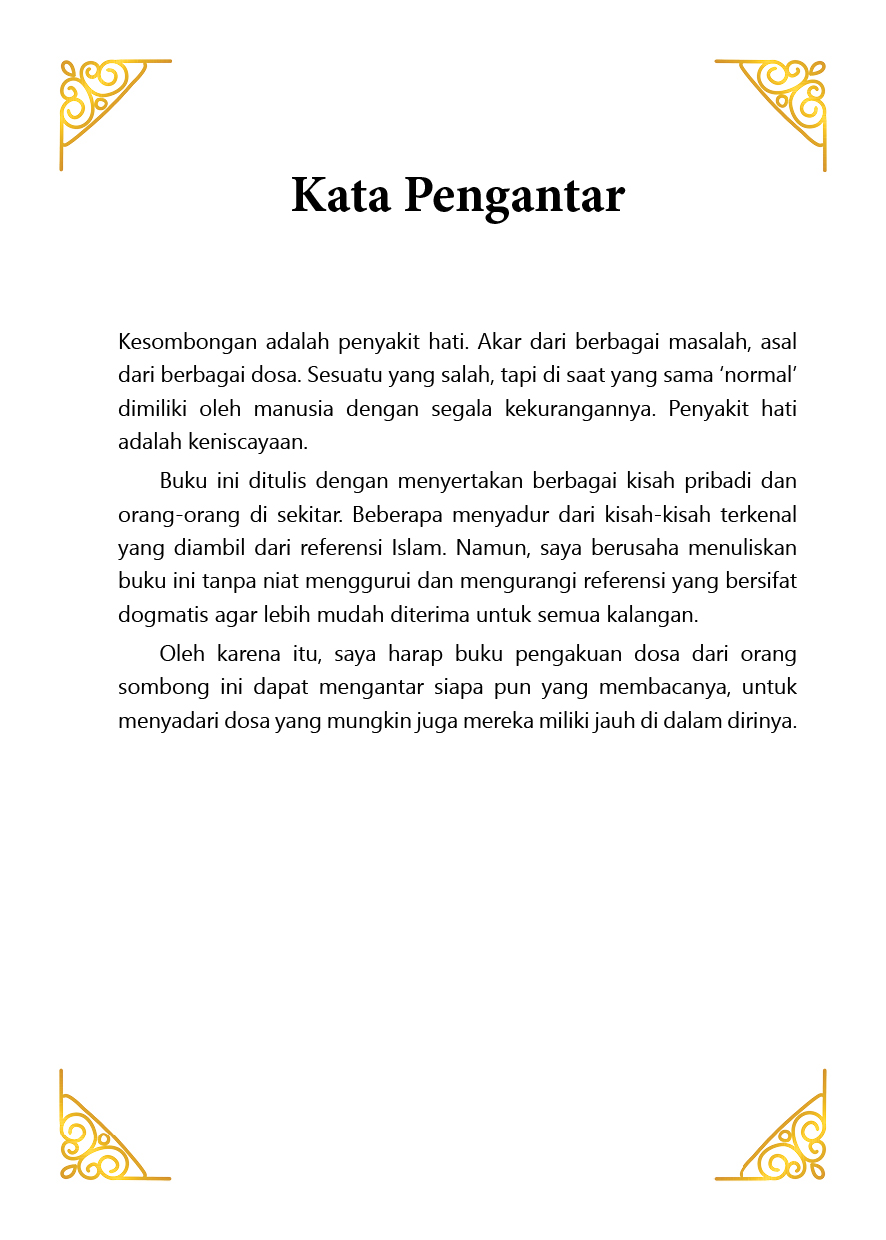 Oleh karena itu, saya harap buku pengakuan dosa dari orang sombong ini dapat mengantar siapa pun yang membacanya, untuk menyadari dosa yang mungkin juga mereka miliki jauh di dalam dirinya.