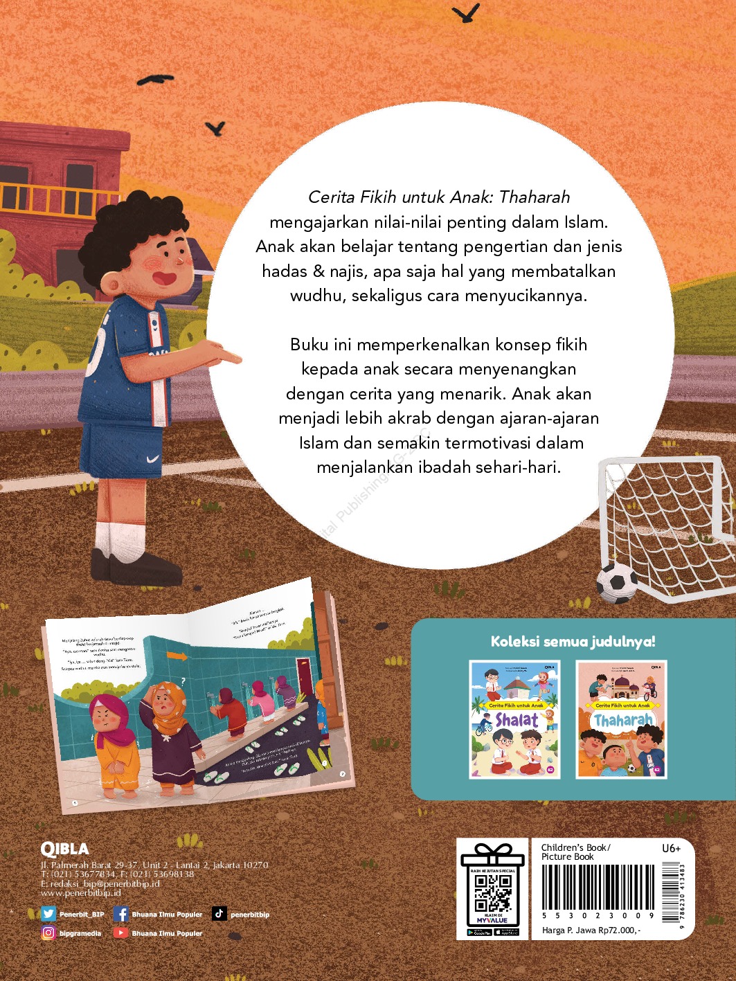 Cerita Fikih untuk Anak: Thaharah mengajarkan nilai-nilai penting dalam Islam. Anak akan belajar tentang pengertian dan jenis hadas & najis, apa saja hal yang membatalkan wudhu, sekaligus cara menyucikannya. Buku ini memperkenalkan konsep fikih kepada anak secara menyenangkan dengan cerita yang menarik. Anak akan menjadi lebih akrab dengan ajaran-ajaran Islam dan semakin termotivasi dalam menjalankan ibadah sehari-hari.