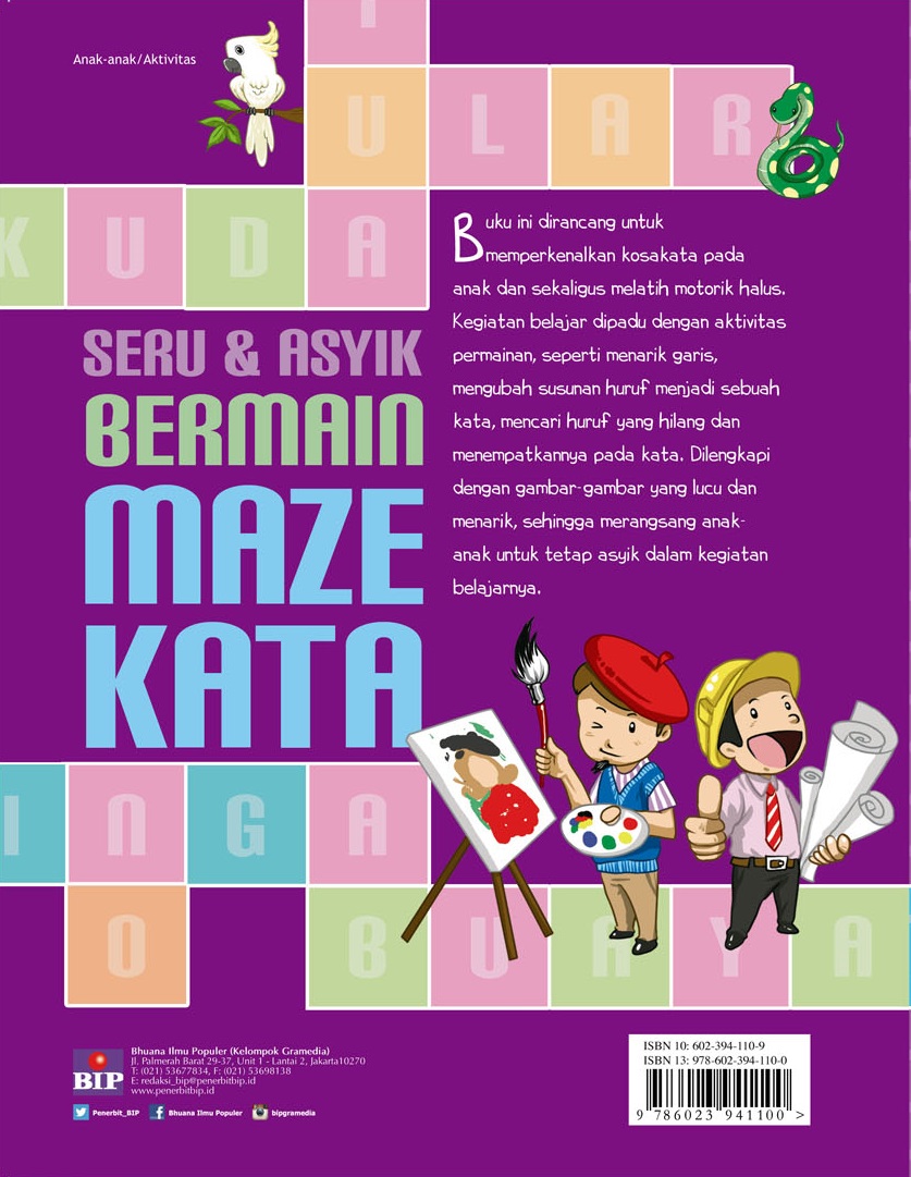 Memperkenalkan kosakata pada anak dan sekaligus melatih motorik halus. Kegiatan belajar mengenal kata dengan aktivitas permainan, seperti menarik garis, mengubah susunan huruf menjadi sebuah kata, mencari huruf yang hilang dan menempatkannya pada kata.