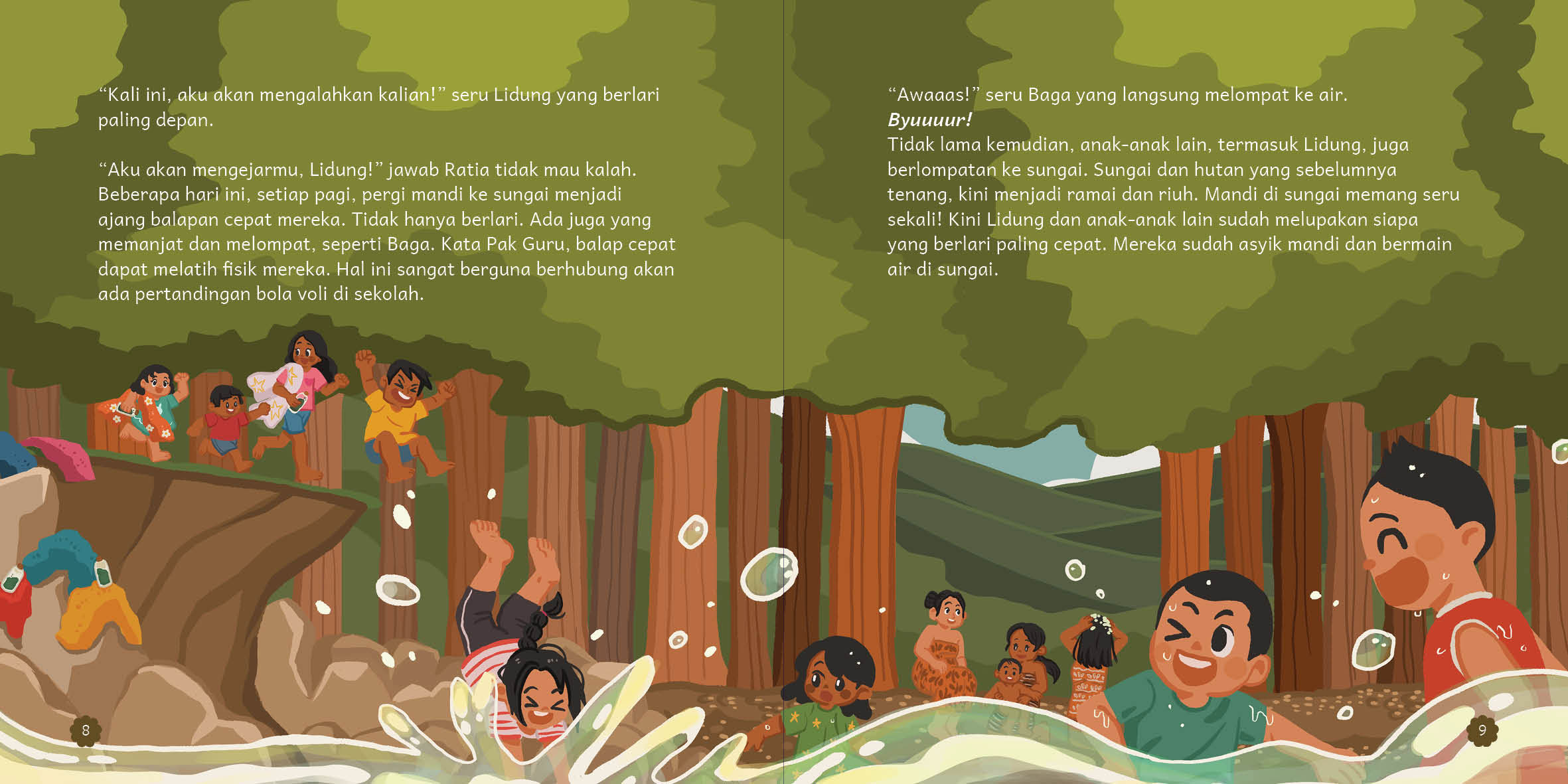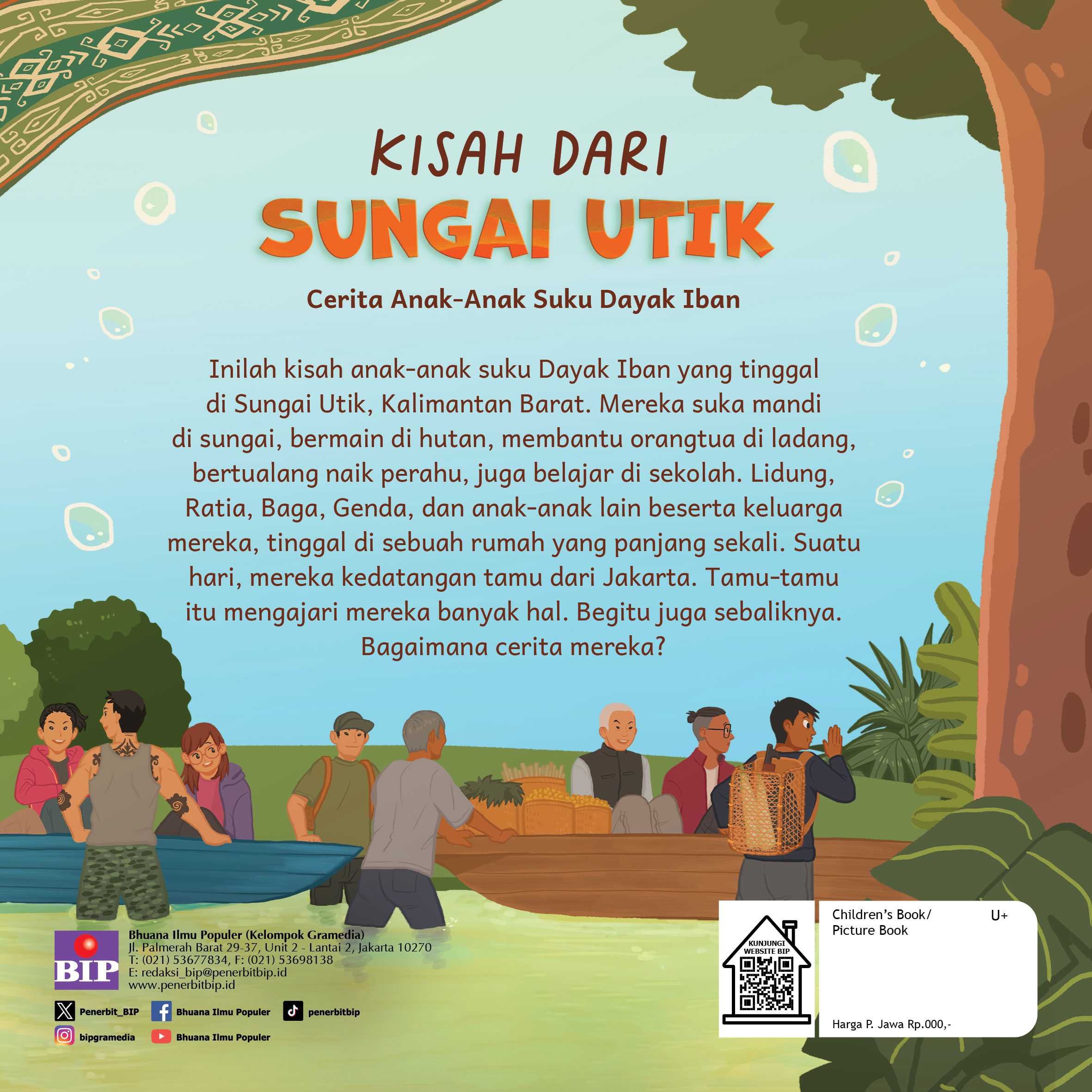 Inilah kisah anak-anak suku Dayak Iban yang tinggal di Sungai Utik, Kalimantan Barat. Mereka suka mandi di sungai, bermain di hutan, membantu orangtua di ladang, bertualang naik perahu, juga belajar di sekolah. Lidung, Ratia, Baga, Genda, dan anak-anak lain beserta keluarga mereka, tinggal di sebuah rumah yang panjang sekali. Suatu hari, mereka kedatangan tamu dari Jakarta. Tamu-tamu itu mengajari mereka banyak hal. Begitu juga sebaliknya. Bagaimana cerita mereka?