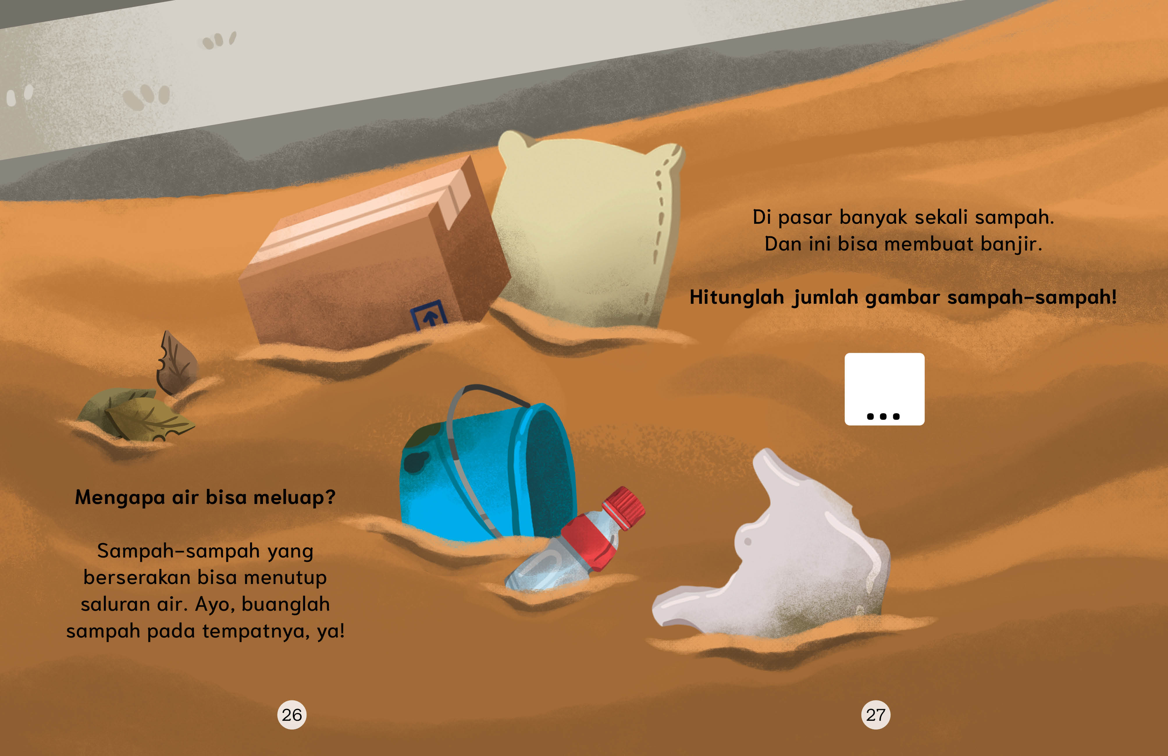 bersama keluarganya? Pada suatu hari, pasar kebanjiran. Aduh, bagaimana keadaan Bulan dan teman-temannya, ya?