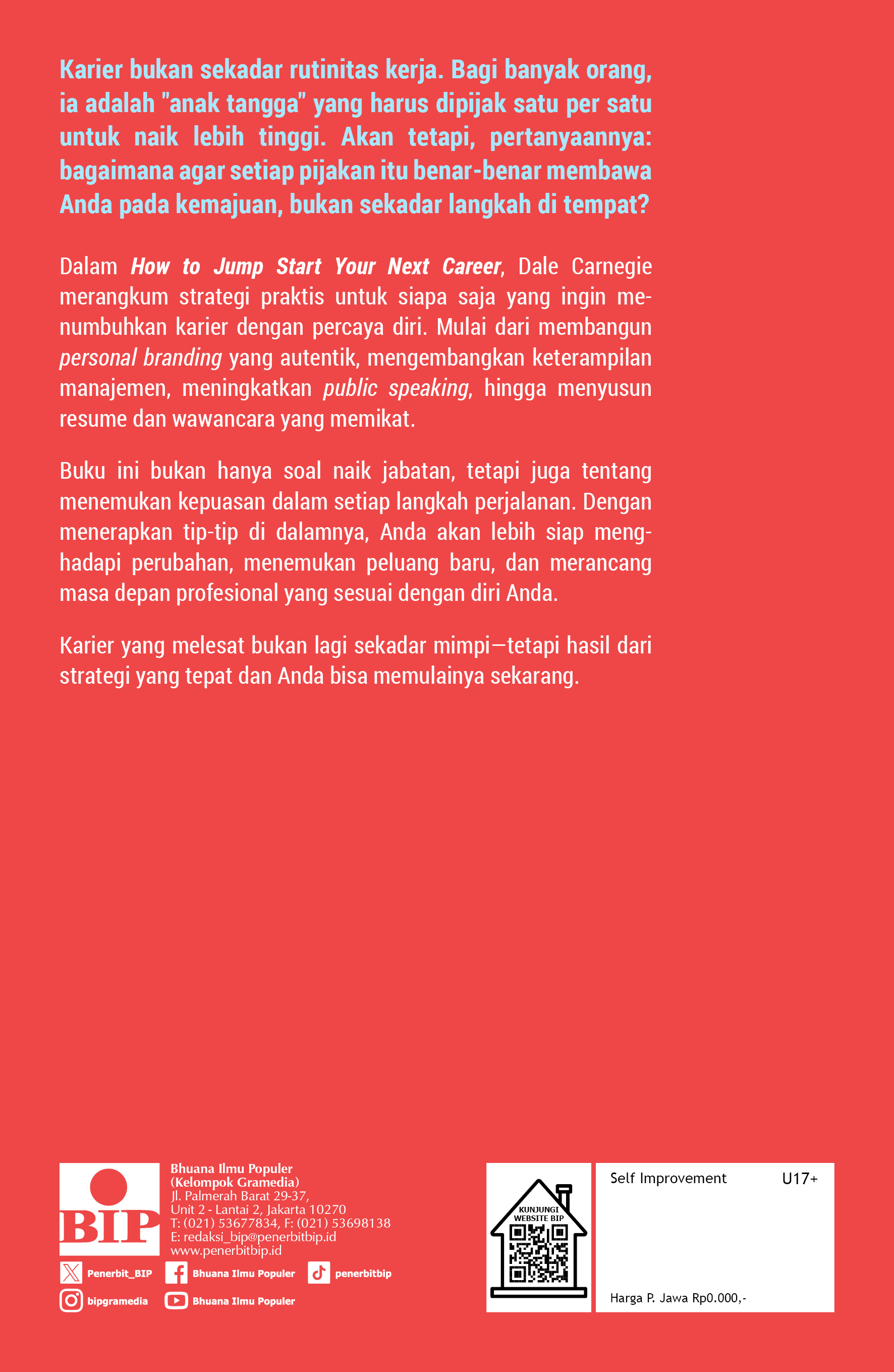 Dalam How to Jump Start Your Next Career, Dale Carnegie merangkum strategi praktis untuk siapa saja yang ingin menumbuhkan karier dengan percaya diri. Mulai dari membangun personal branding yang autentik, mengembangkan keterampilan manajemen, meningkatkan public speaking, hingga menyusun resume dan wawancara yang memikat.