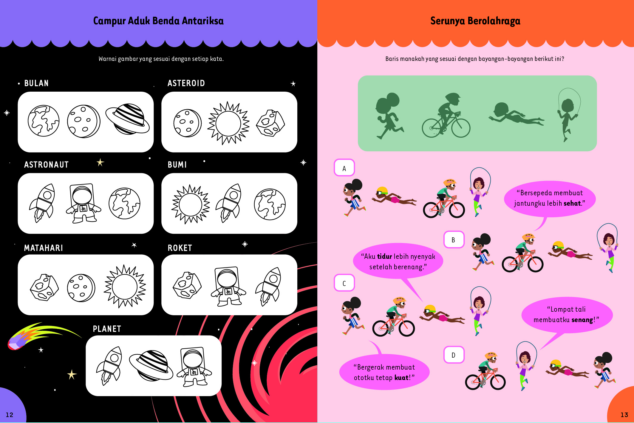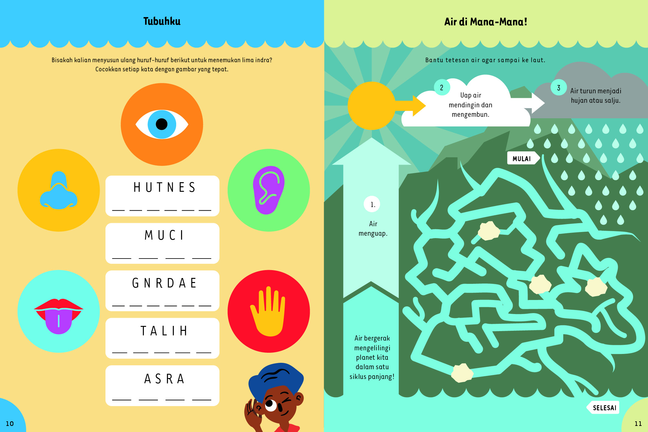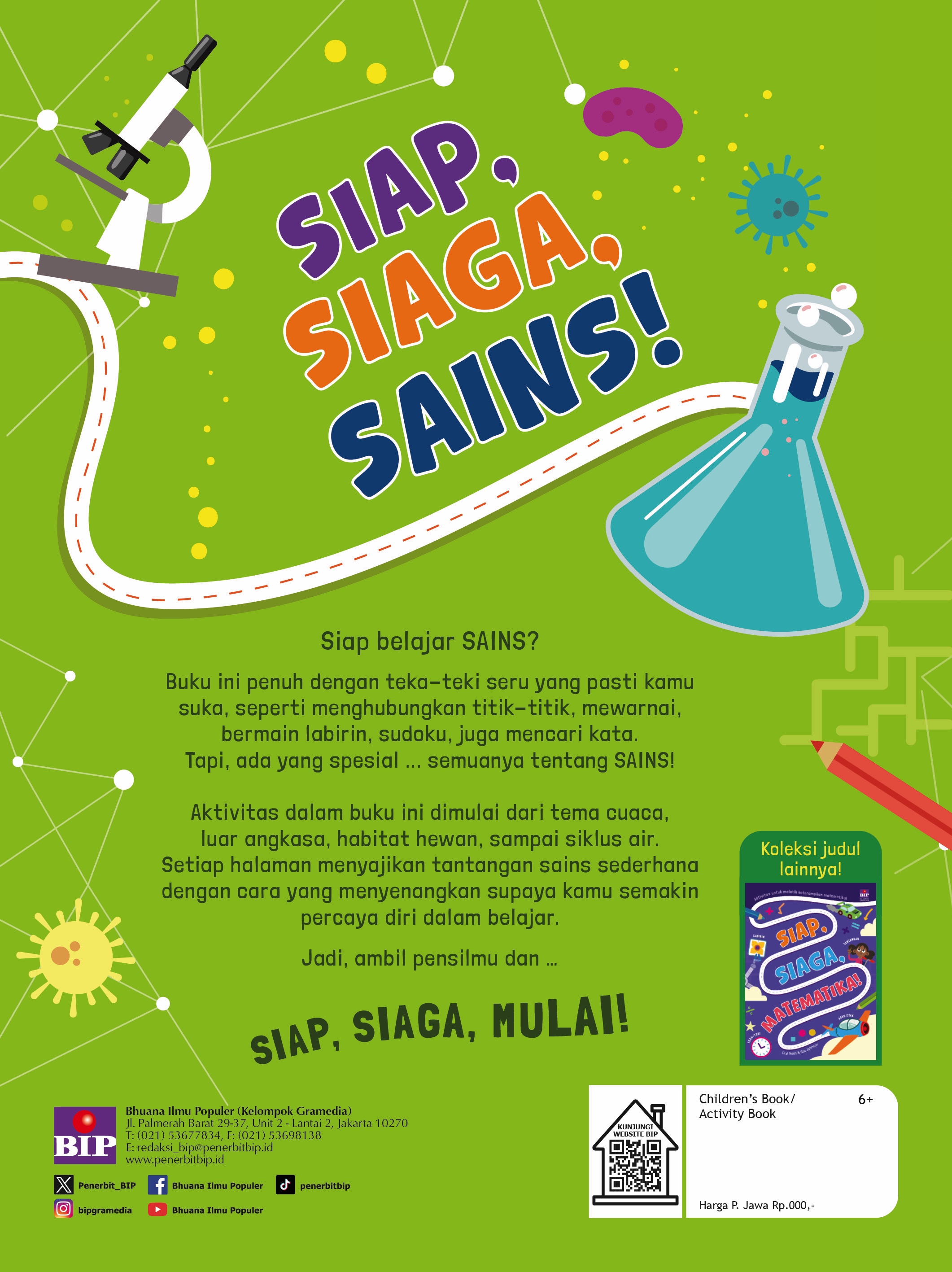 Aktivitas dalam buku ini dimulai dari tema cuaca, luar angkasa, habitat hewan, sampai siklus air. Setiap halaman menyajikan tantangan sains sederhana dengan cara yang menyenangkan supaya kamu semakin percaya diri dalam belajar.