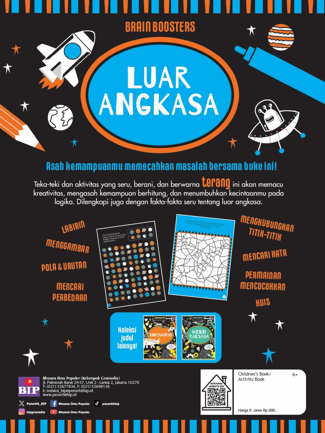 Teka-teki dan aktivitas yang seru, berani, dan berwarna terang ini akan memacu kreativitas, mengasah kemampuan berhitung, dan menumbuhkan kecintaanmu pada logika. Dilengkapi juga dengan fakta-fakta seru tentang luar angkasa.