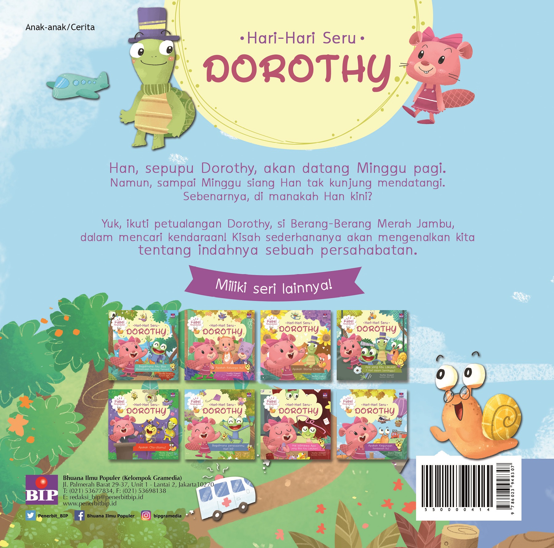 Buku ini berisi tentang keseharian Dorothy si berang-berang merah jambu bersama teman-teman hewannya. Dalam kisah kali ini, Dorothy kebingungan mencari sepupunya, Han, yang tidak kunjung datang. Dia pun meminta tolong teman-temannya untuk menemukan Han dengan mengamati setiap kendaraan yang lewat. Dia pun jadi tahu apa saja kegunaan kendaraan-kendaraan itu. Yuk, ikuti petualangan Dorothy, si Berang-Berang Merah Jambu, dalam mengenal kendaraan bersama teman-temannya! Kisah sederhananya akan mengenalkan kita tentang indahnya sebuah persahabatan. Hari-hari Seru Dorothy adalah seri yang terdiri atas delapan buku. Semuanya mengisahkan keseharian Dorothy.
