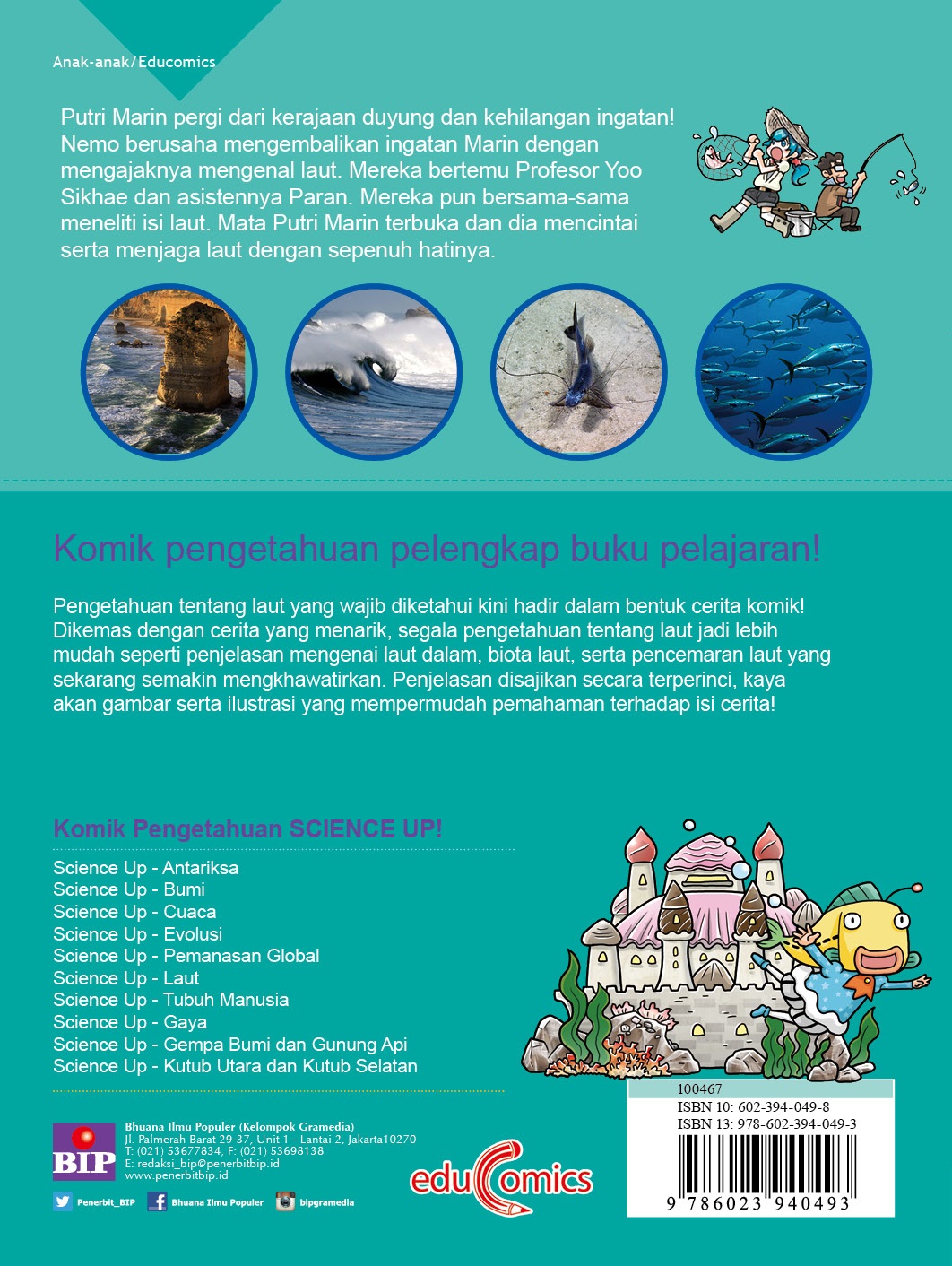 Putri Marin pergi dari Kerajaan Duyung dan kehilangan ingatan! Nemo berusaha mengembalikan Marin dengan mengajaknya mengenal laut. Mereka bertemu dengan Profesor Yoo Sikhae dan asistennya, Paran. Mereka pun bersama-sama meneliti isi laut. Mata Putri Marin terbuka dan dia akhirnya mencintai dan menjaga laut dengan sepenuh hatinya. Melalui Science Up: Laut, anak-anak dapat mempelajari berbagai hal mengenai laut. Kenapa laut sangat penting dalam kelangsungan hidup di Bumi? Bagaimana laut terbentuk? Dengan mengenal laut, anak-anak dapat memahami bahwa laut dan isinya harus dijaga dengan baik. Jangan mengotori laut.
