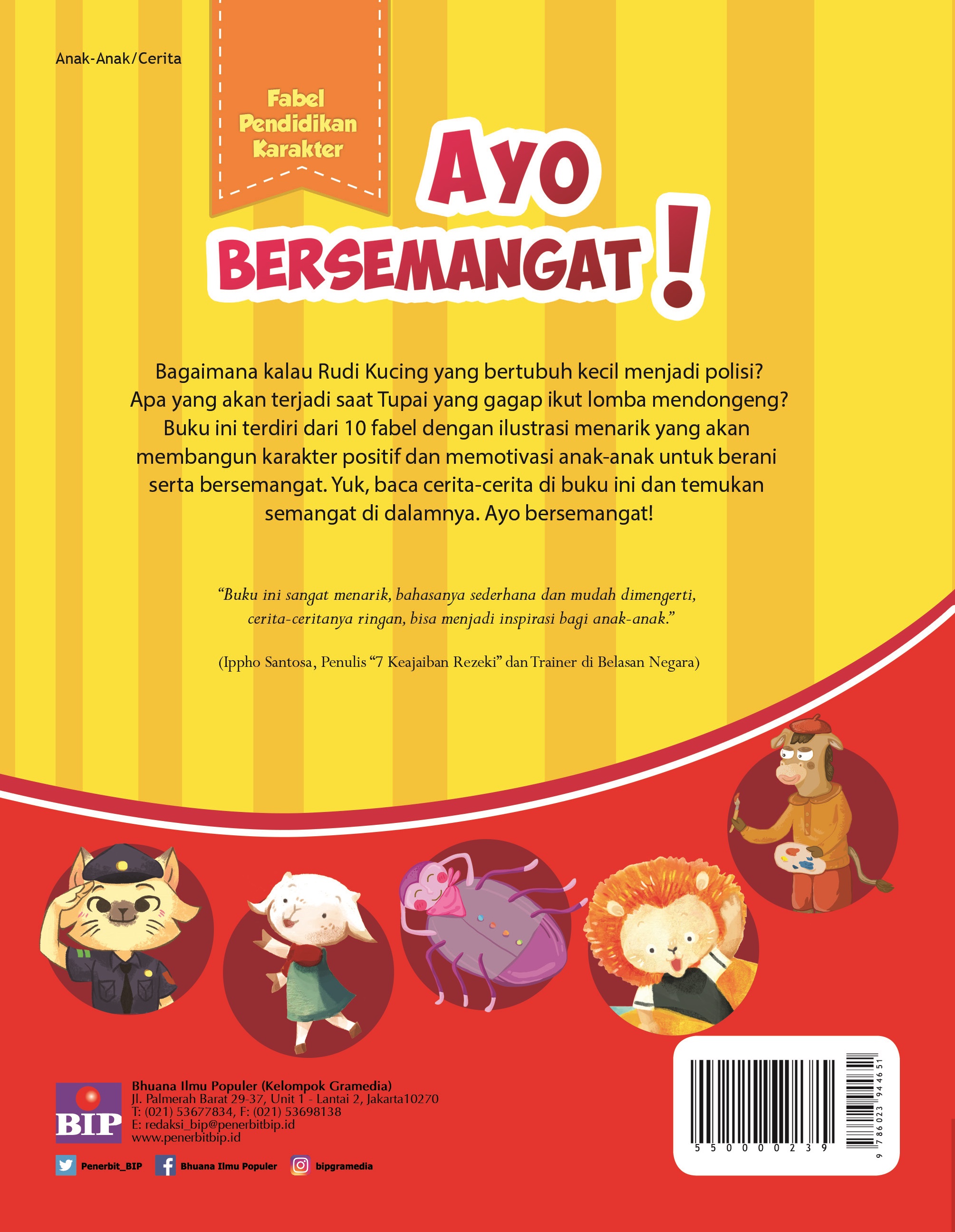 Buku ini terdiri dari 10 fabel yang dilengkapi ilustrasi menarik yang akan membangun karakter positif dan memotivasi anak-anak untuk berani serta bersemangat dan ceria.