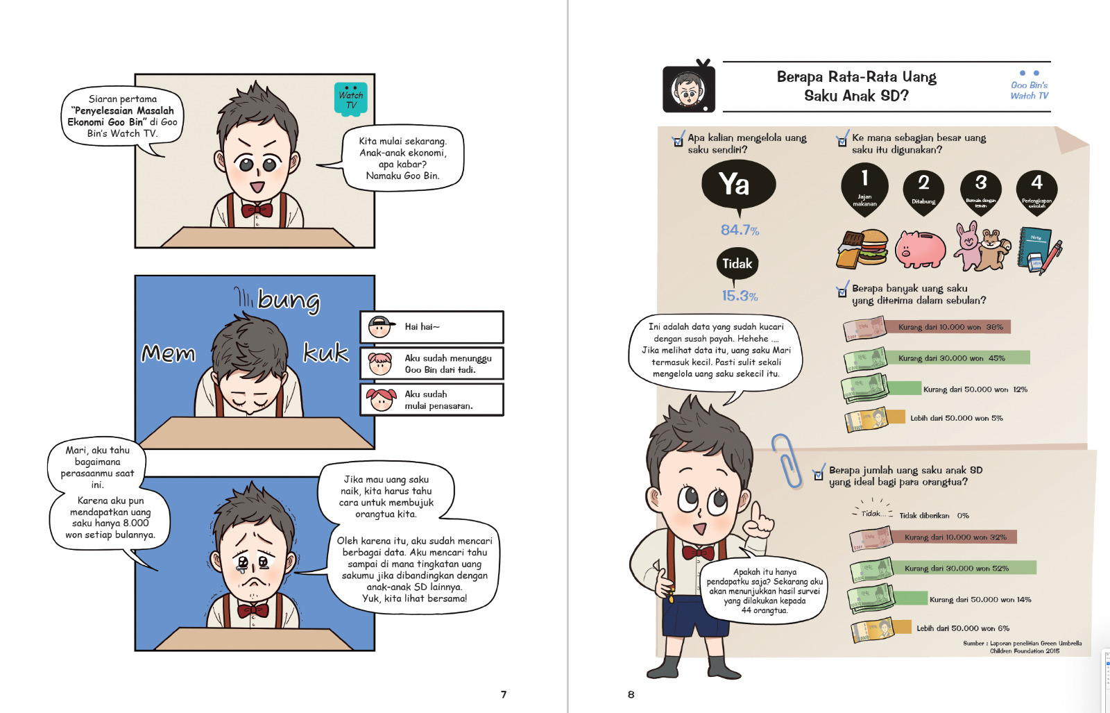 Halo, Teman-Teman, aku Goo Bin si ahli keuangan cilik! Lewat kanal Goo Bin Watch TV milikku, aku membantu teman-teman yang mempunyai masalah keuangan! Kalian bisa, lho, membuka tabungan dan menabung untuk membeli mainan yang kalian incar! Orangtua kalian pasti bangga melihat anaknya dapat mengelola uang. Mau tahu caranya?