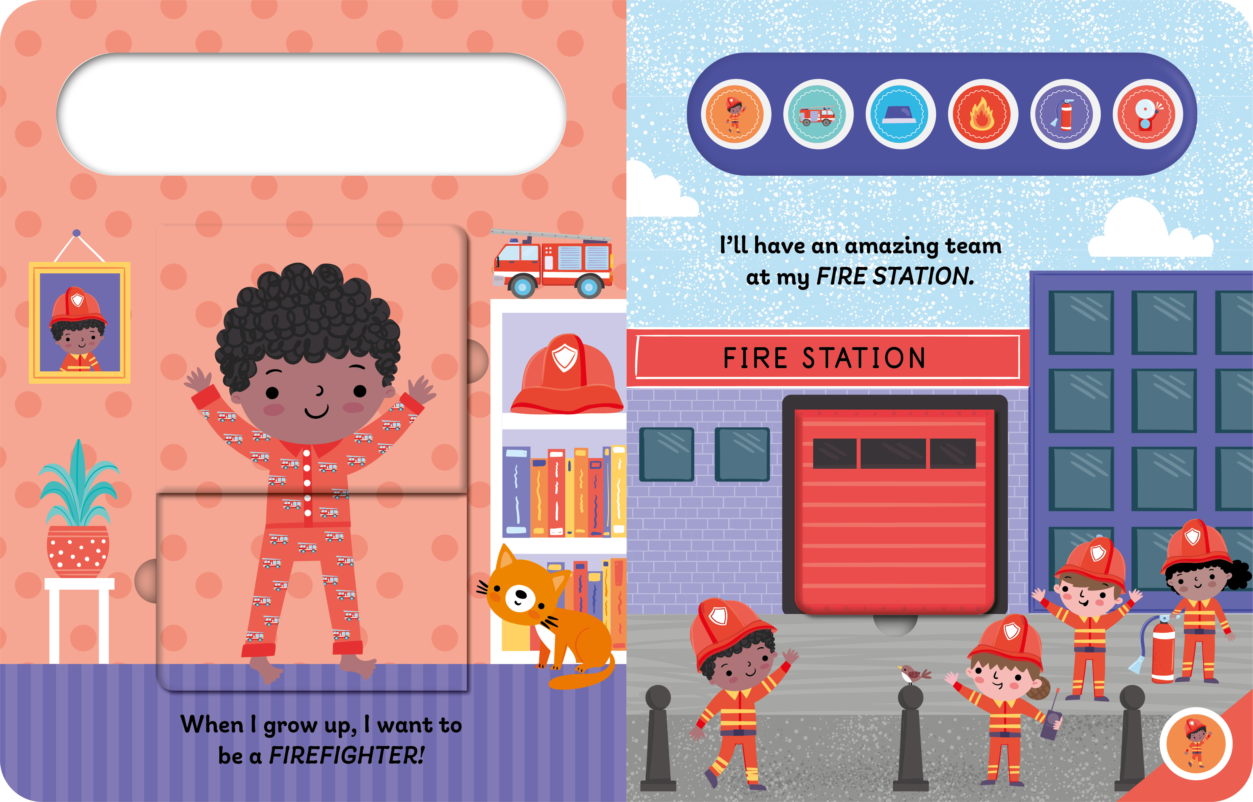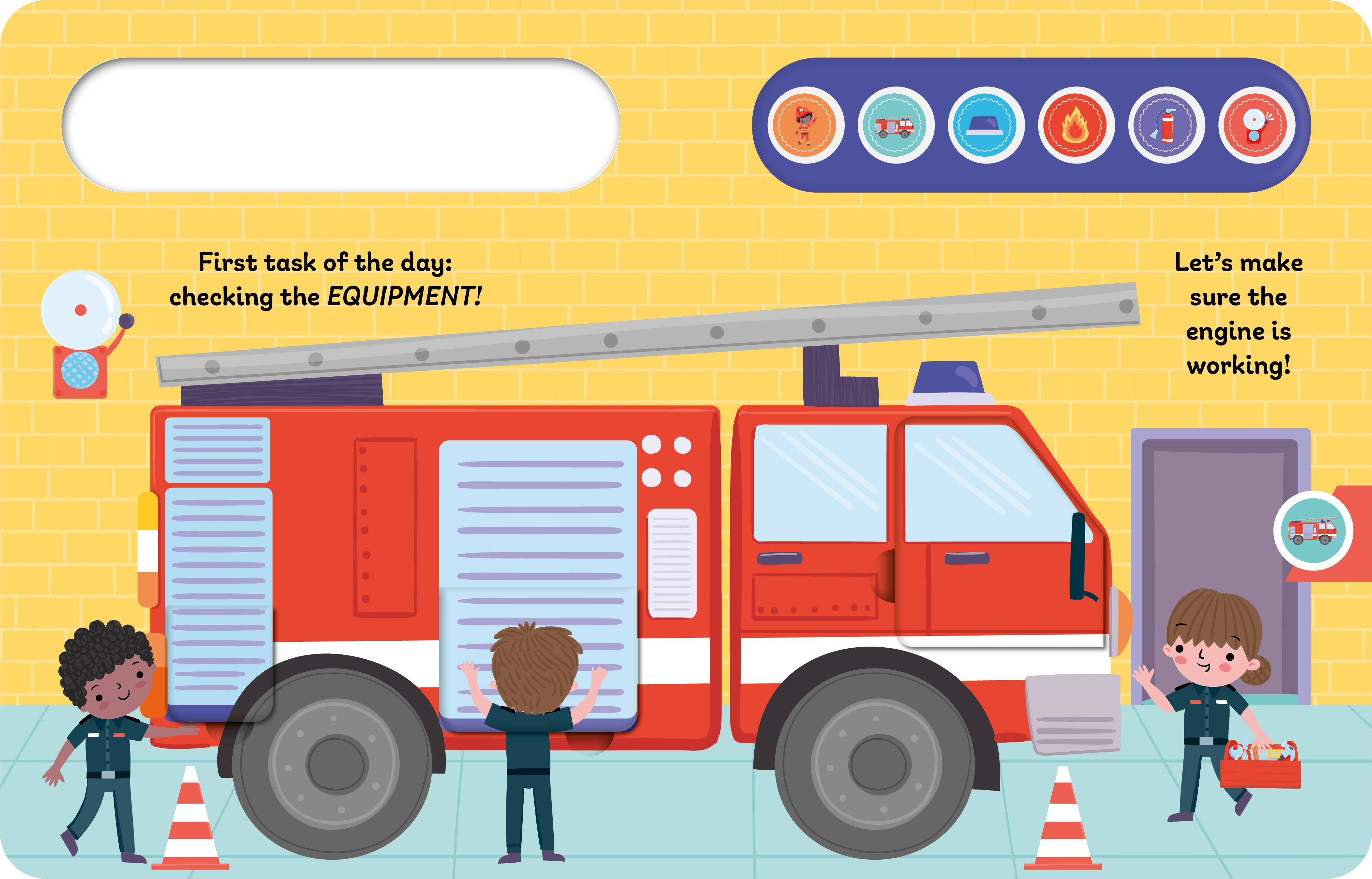 Spend a day in the life of a busy firefighter in this bright, interactive flap book!