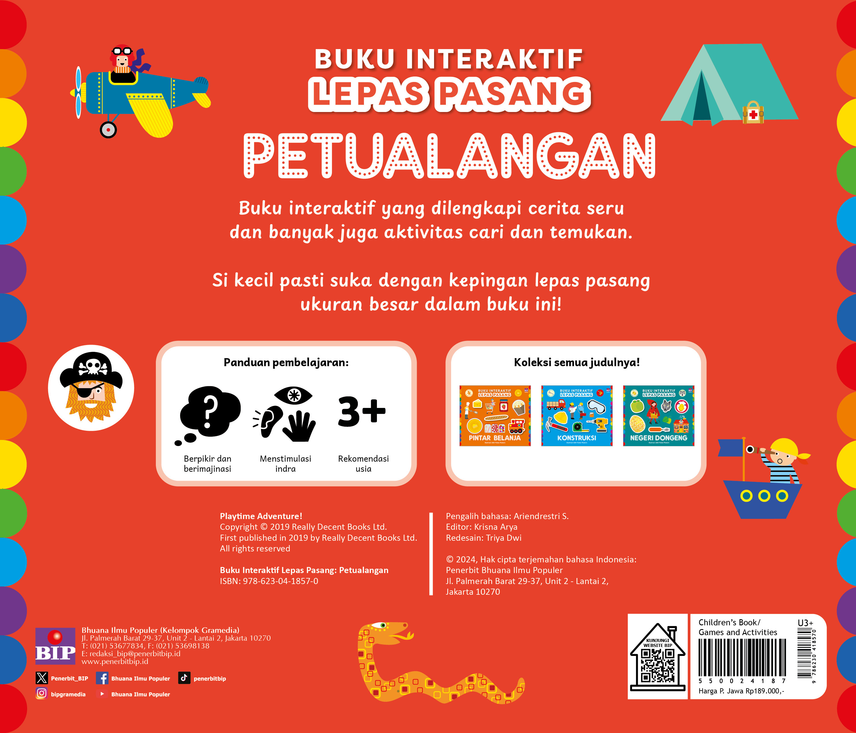 Buku interaktif yang dilengkapi cerita seru dan banyak juga aktivitas cari dan temukan.