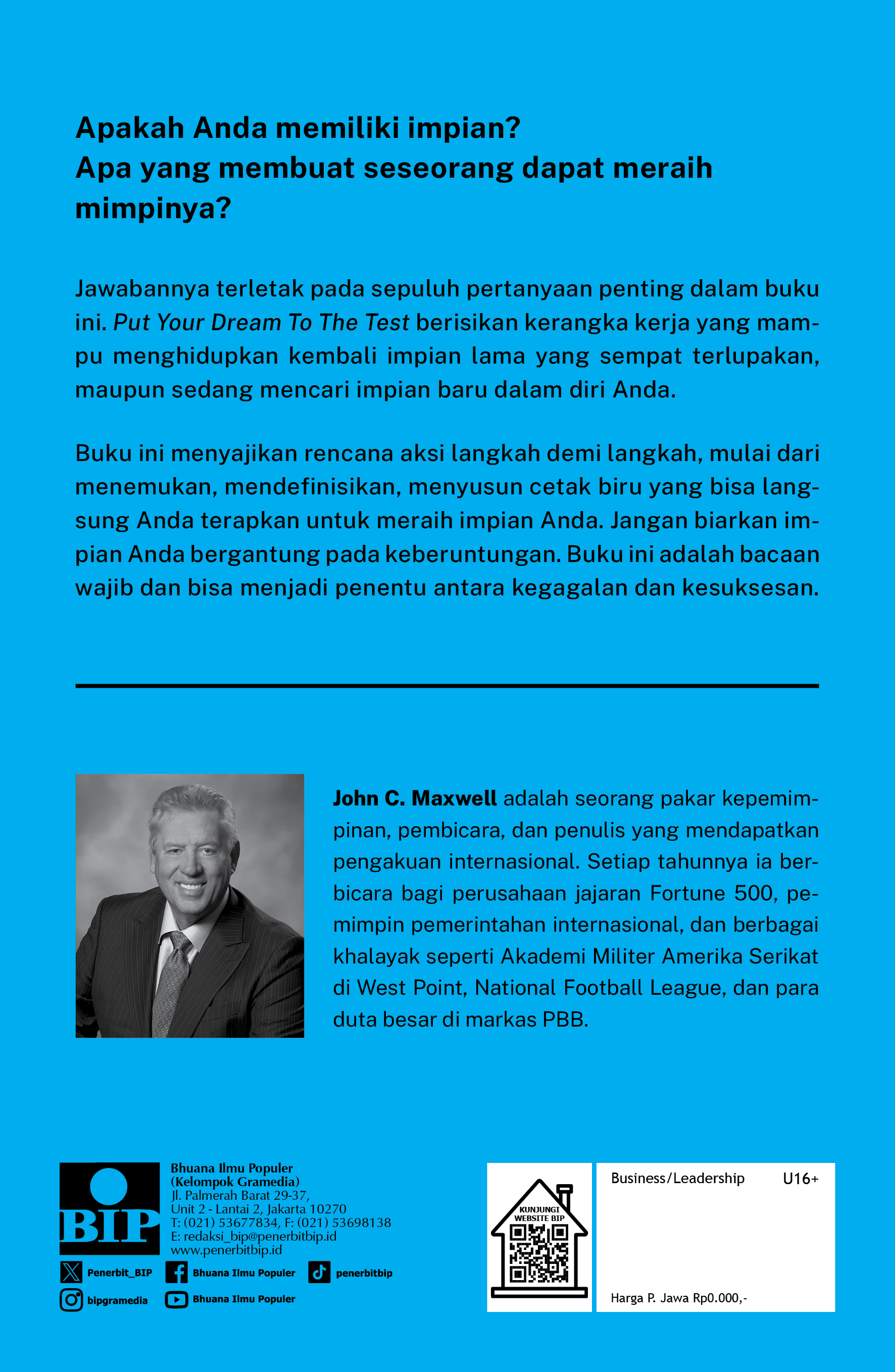 Buku ini menyajikan rencana aksi langkah demi langkah, mulai dari menemukan, mendefinisikan, menyusun cetak biru yang bisa langsung Anda terapkan untuk meraih impian Anda. Jangan biarkan impian Anda bergantung pada keberuntungan. Buku ini adalah bacaan wajib dan bisa menjadi penentu antara kegagalan dan kesuksesan.