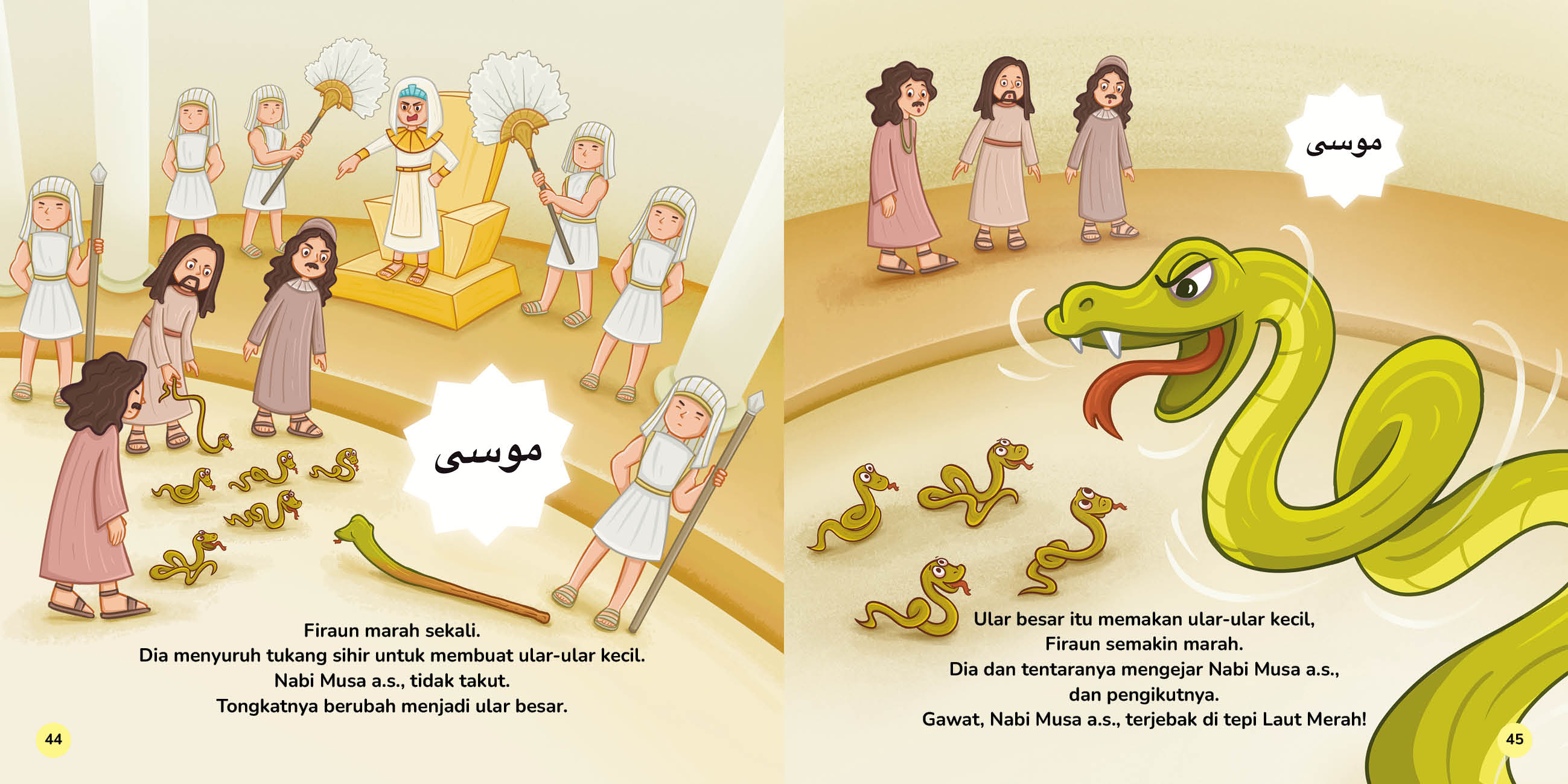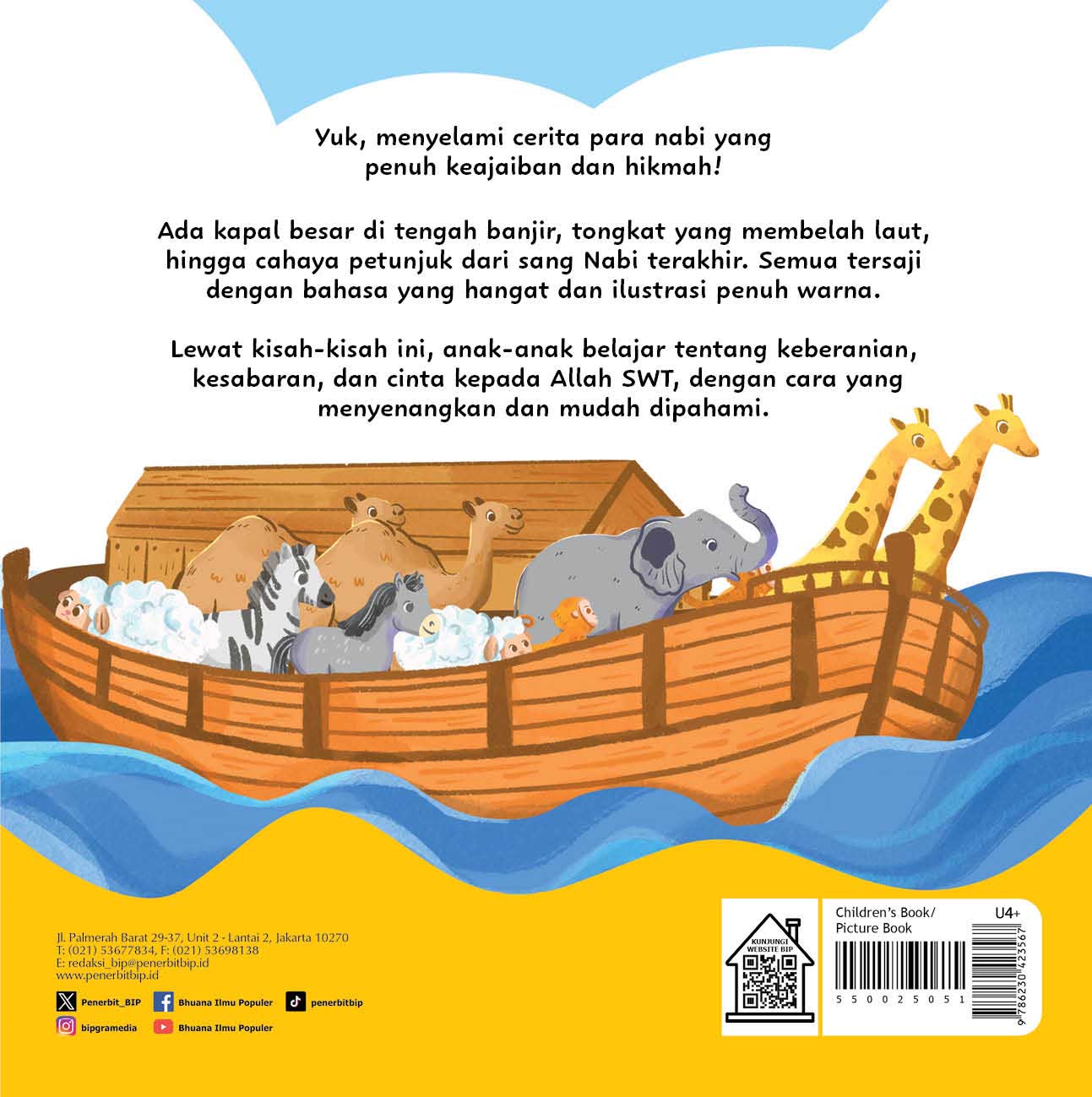Ada kapal besar di tengah banjir, tongkat yang membelah laut, hingga cahaya petunjuk dari sang Nabi terakhir. Semua tersaji dengan bahasa yang hangat dan ilustrasi penuh warna.