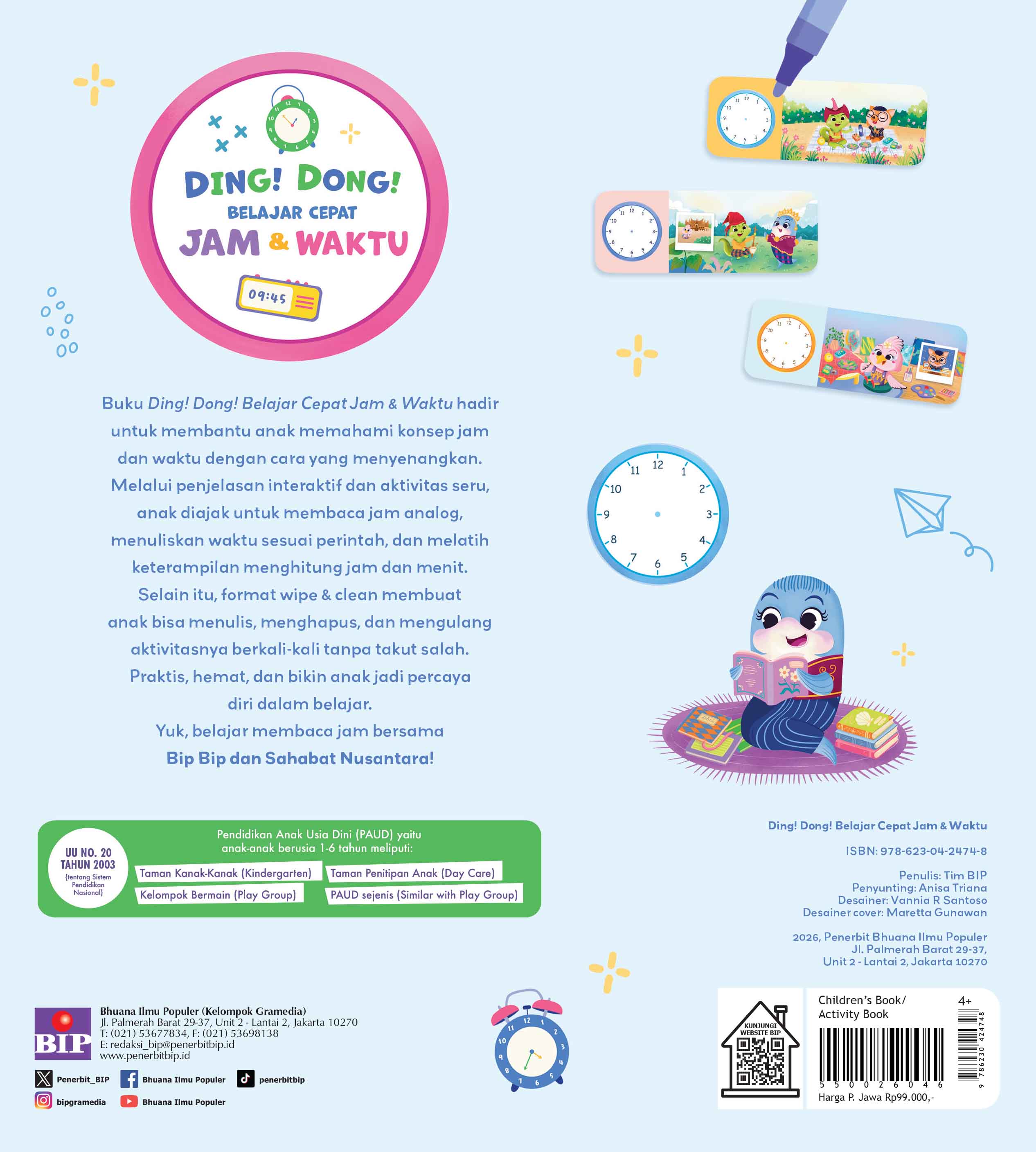 Buku Ding! Dong! Belajar Cepat Jam & Waktu hadir untuk membantu anak memahami konsep jam dan waktu dengan cara yang menyenangkan.