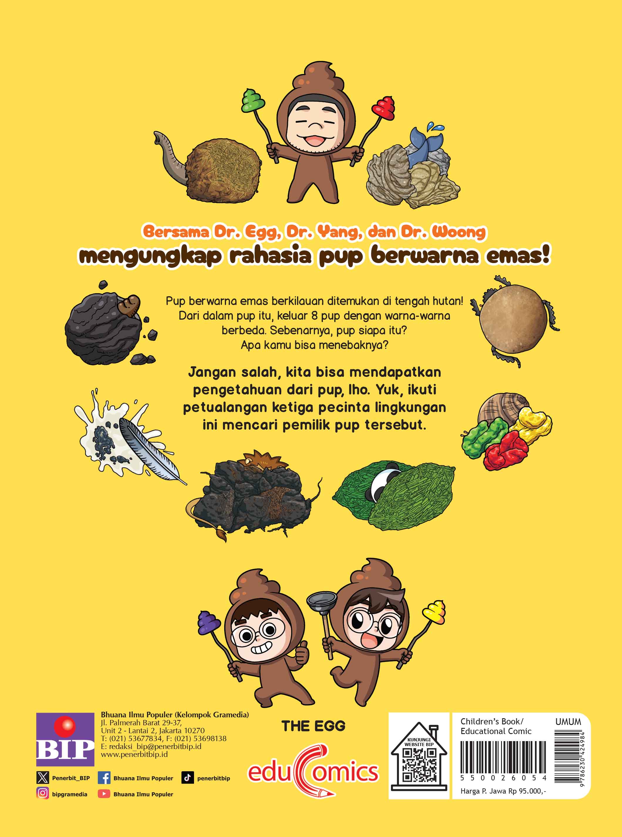 Bersama Dr. Egg, Dr. Yang, dan Dr. Woong mengungkap rahasia pup berwarna emas! Pup berwarna emas berkilauan ditemukan di tengah hutan! Dari dalam pup itu, keluar 8 pup dengan warna-warna berbeda. Sebenarnya, pup siapa itu? Apa kamu bisa menebaknya? Jangan salah, kita bisa mendapatkan pengetahuan dari pup, lho. Yuk, ikuti petualangan ketiga pecinta lingkungan ini mencari pemilik pup tersebut.