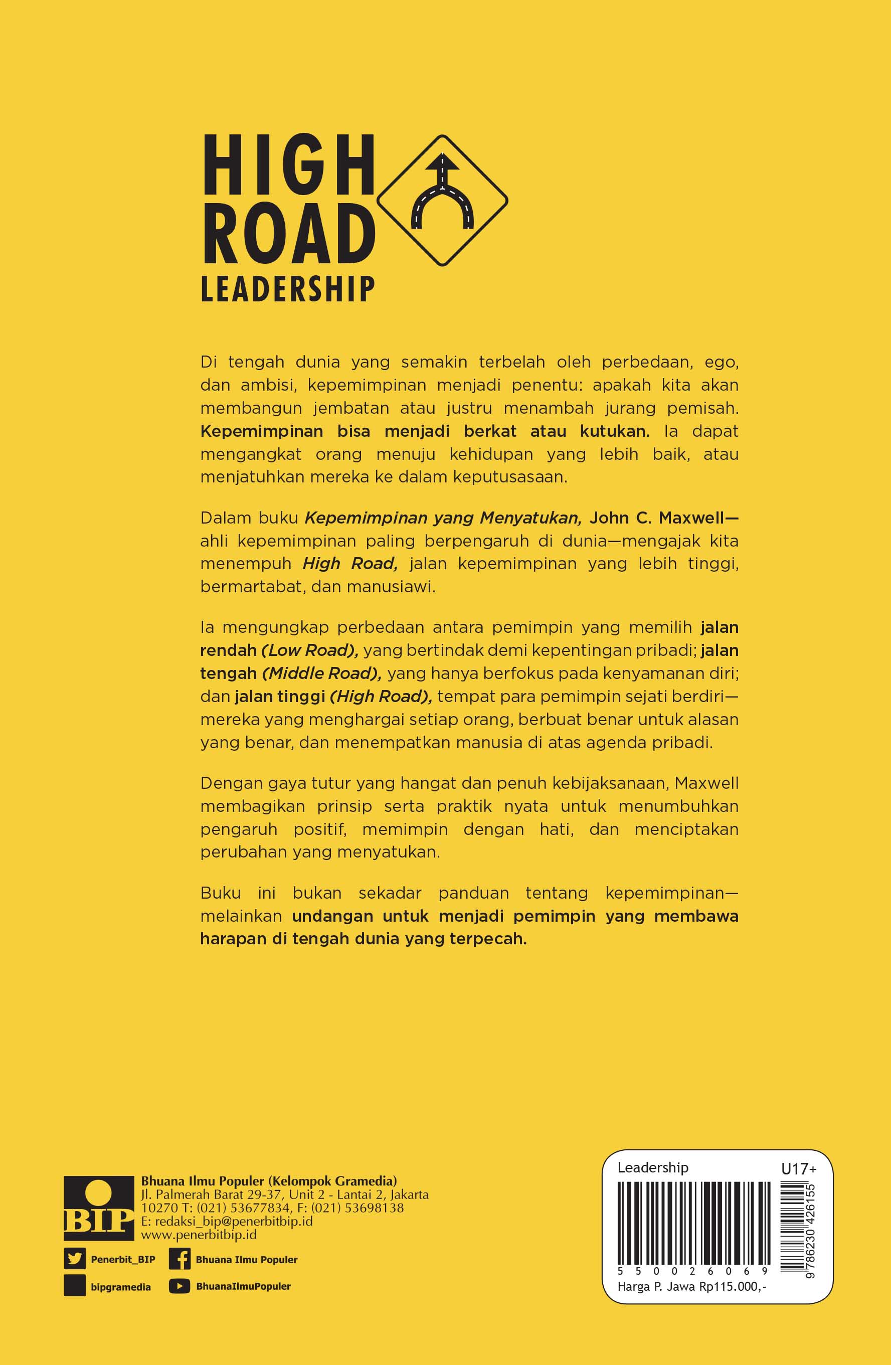 Dalam buku Kepemimpinan yang Menyatukan, John C. Maxwell—ahli kepemimpinan paling berpengaruh di dunia—mengajak kita menempuh High Road, jalan kepemimpinan yang lebih tinggi, bermartabat, dan manusiawi.