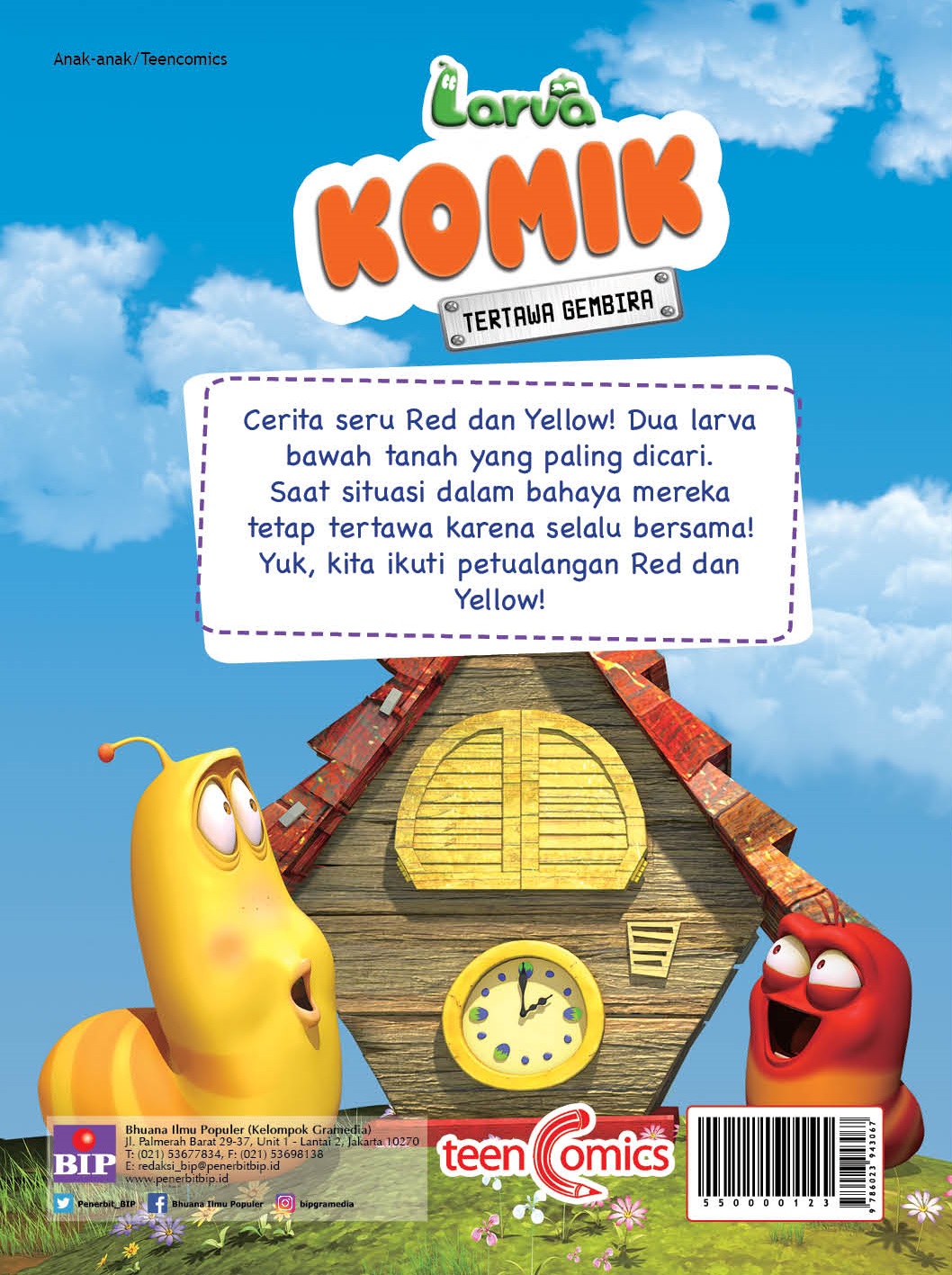 Komik Larva ini berisi cerita Red dan Yellow yang lucu dan seru. Saat situasi bahaya, mereka tetap tertawa karena selalu bersama! Membuat kita juga gembira saat membacanya. Ikuti kisah Red dan Yellow dan siap-siap tertawa terbahak-bahak dengan tingkah konyol mereka.