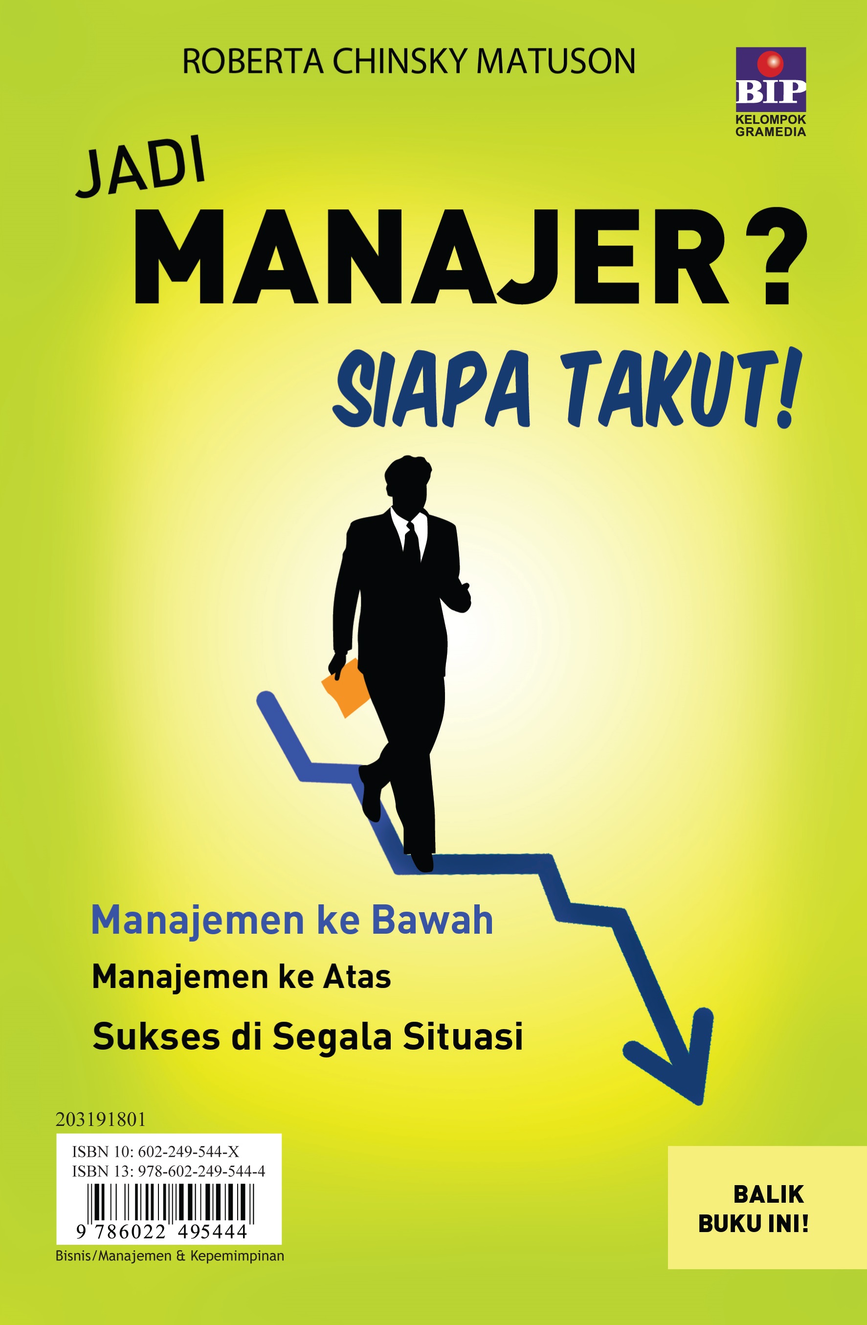 Tiba-tiba saja Anda dipromosikan. Jabatan manajer sudah Anda dapatkan. Kini, tiba saatnya Anda menunjukkan kemampuan Anda sebagai pemimpin. Apakah Anda sudah siap? Jadi Manajer? Siapa Takut! akan membantu kesuksesan Anda sebagai manajer baru. Menduduki posisi baru selalu terasa menegangkan. Hari-hari pertama Anda kerap menjadi tolok ukur penilaian dan keberhasilan Anda. Dalam buku ini, Roberta Chinsky Matuson akan menyiapkan Anda untuk tampil gemilang sebagai manajer baru. Kesuksesan Anda sebagai manajer tidak hanya dinilai dari seberapa baik Anda mengelola bawahan, tetapi juga seberapa baik Anda mengelola hubungan dengan atasan. Dukungan penuh dari bawahan tidak akan cukup untuk mendongkrak karier. Bagaimanapun, Anda juga membutuhkan dorongan dari jajaran manajerial di atas Anda. Itulah sebabnya, mengapa Roberta Chinsky Matuson membagi buku ini menjadi dua bagian: Manajemen ke Atas dan Manajemen ke Bawah. Begitu menduduki jabatan baru, Anda akan mendapatkan bawahan baru, bukan sekadar orang-orang yang baru Anda temui di kantor, tetapi juga “bekas” sesama rekan kerja. Kini, Anda yang memimpin mereka! Belum lagi jika sahabat Anda sendiri yang menjadi bawahan. Bukan tidak mungkin Anda akan menemui kesulitan saat ia meminta toleransi macam-macam. Rekrutmen karyawan pun juga menjadi masalah tersendiri. Anda harus bisa memisahkan pelamar bertalenta dengan pelamar yang hanya berpenampilan baik. Rekrutmen karyawan juga berkaitan dengan pengurangan karyawan. Perusahaan membutuhkan regenerasi. Pemecatan karyawan adalah hal umum yang akan Anda hadapi sebagai manajer. Memecat karyawan juga memiliki etika tersendiri. Selain menghadapi segala macam tantangan dari bawahan, Anda juga perlu menjaga hubungan dengan atasan. Mau tidak mau, Anda akan terlibat dalam politik kantor. Alih-alih menghindar, Anda perlu belajar bagaimana memanfaatkan politik kantor secara profesional untuk menonjolkan kemampuan Anda. Jangan hanya duduk di belakang meja dan menunggu seseorang mengenali kemampuan Anda. Pelajarilah seni “menyombongkan diri” dengan tepat untuk mendapat promosi. Selain promosi, Anda juga berhak mendapatkan kenaikan gaji. Ambillah kesempatan yang tepat untuk mengajukan kenaikan pendapatan. Ingat, kenaikan gaji juga harus konsisten dengan kinerja Anda. Buku ini bukan sekadar buku teori belaka, melainkan juga panduan praktis bagi para manajer baru. Beragam contoh kasus di setiap strategi manajerial akan semakin memperluas wawasan Anda. Anda tidak sendirian menghadapi kejamnya dunia manajerial. Banyak contoh sukses yang bisa Anda pelajari untuk meneguhkan perjalanan karier Anda! Jadi manajer? Siapa takut!