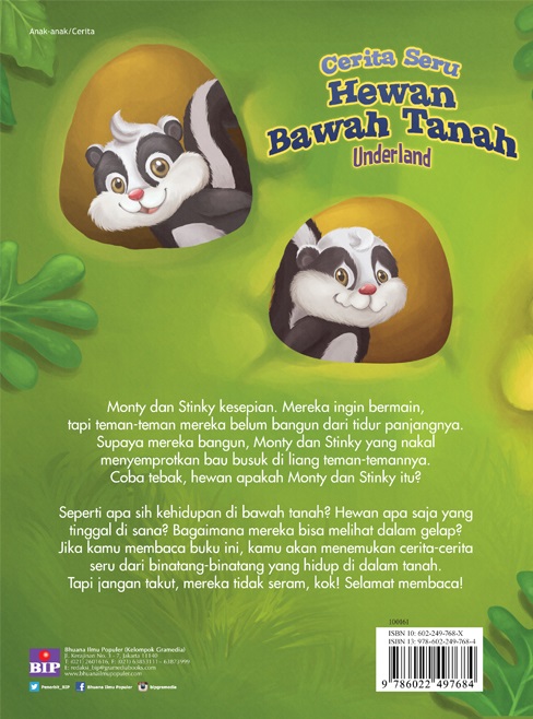 Ada beragam hewan yang bisa ditemukan dalam buku ini. Bukan hanya tikus & cacing tanah, melainkan rubah, musang, chipmunk, kepiting, armadilo, rayap, landak, & sigung juga tinggal di bawah tanah. Dengan membaca cerita ini, anak-anak dapat belajar bahwa setiap makhluk itu diciptakan dengan keunikan masing-masing.