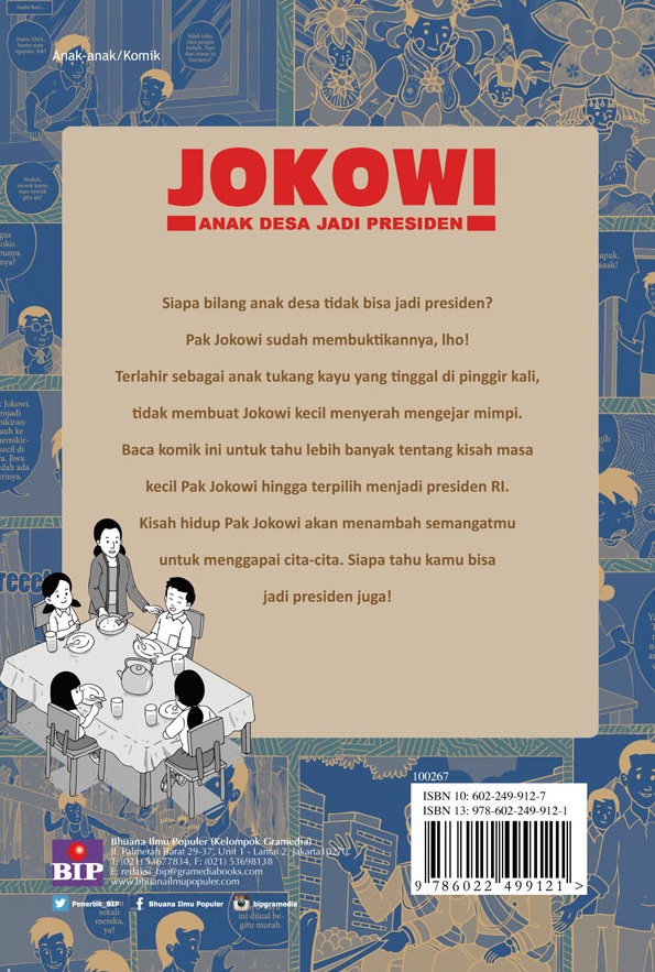 Komik ini berisi kisah hidup Jokowi dari kecil hingga terpilih menjadi presiden. Diceritakan menurut sudut pandang orang ketiga, yaitu seorang bapak yang menceritakan kisah hidup Jokowi kepada dua anaknya. Ada kisah seputar keseharian Jokowi bermain bersama teman-temannya, bagaimana Jokowi membantu kehidupan keluarganya, kehidupan sekolah Jokowi, ketika Jokowi menjabat sebagai gubernur Solo, ketika Jokowi menjabat sebagai gubernur Jakarta, hingga akhirnya terpilih sebagai presiden RI.
