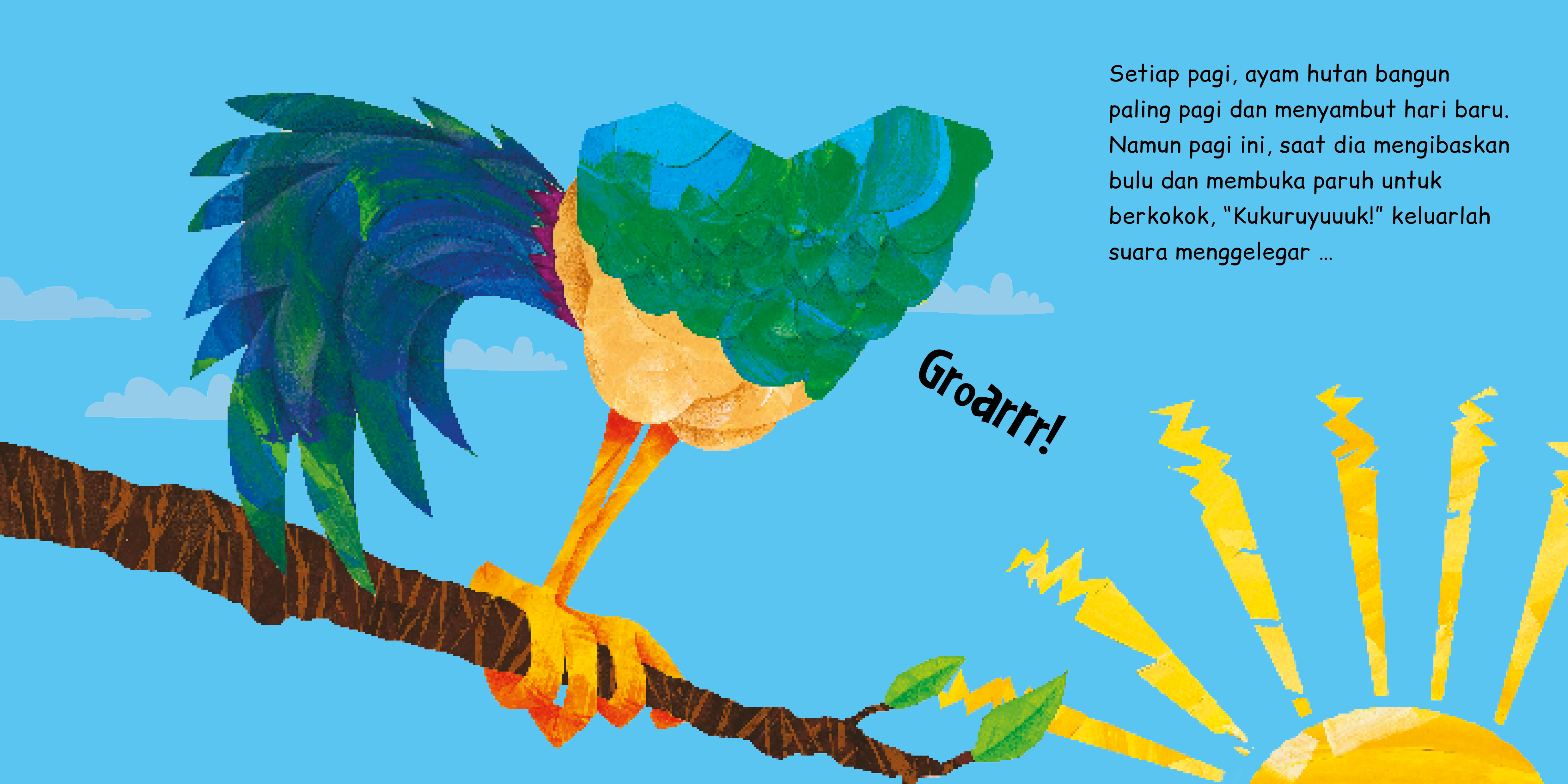 Suatu pagi, semua hewan di hutan terbangun dan kaget karena suara mereka saling tertukar. Jerapah tidak khawatir karena dia memang tidak bersuara. Tapi, apa yang terjadi saat Jerapah membuka mulutnya?