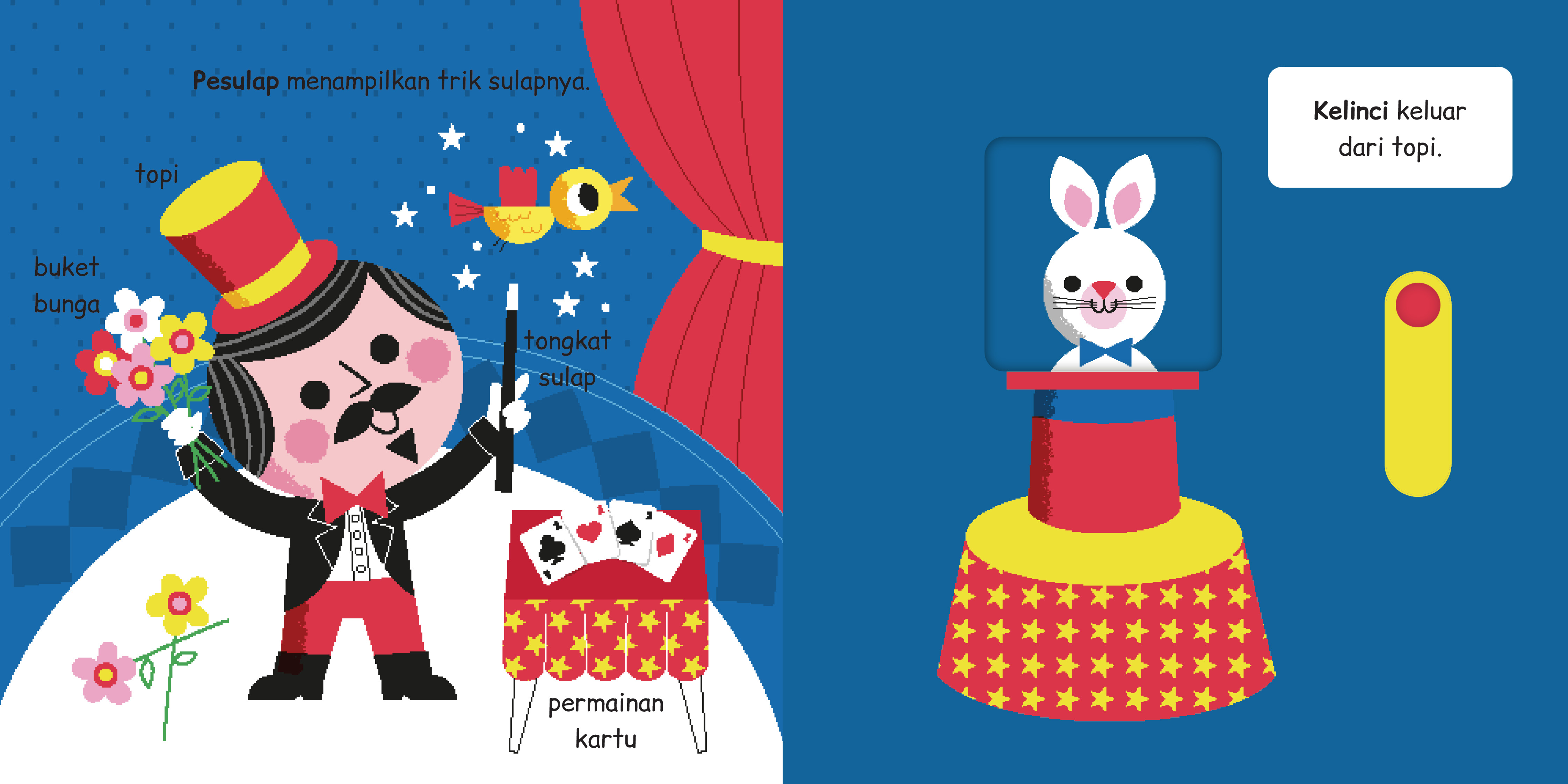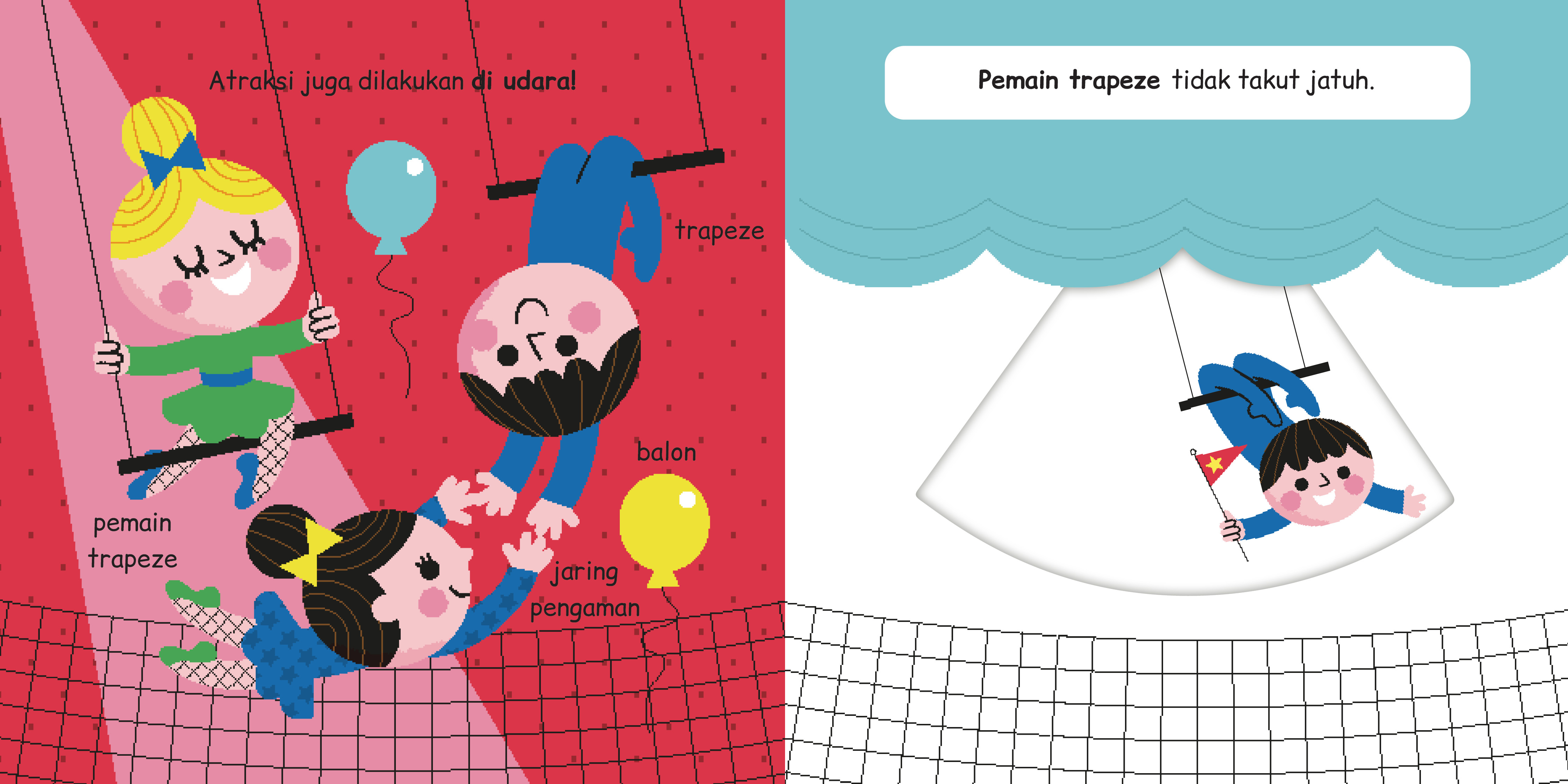 Ayo, kenalkan balita Anda dengan pertunjukan sirkus! Buku interaktif ini akan menjadi teman yang asyik untuk belajar dan mengenal berbagai hal di arena sirkus.