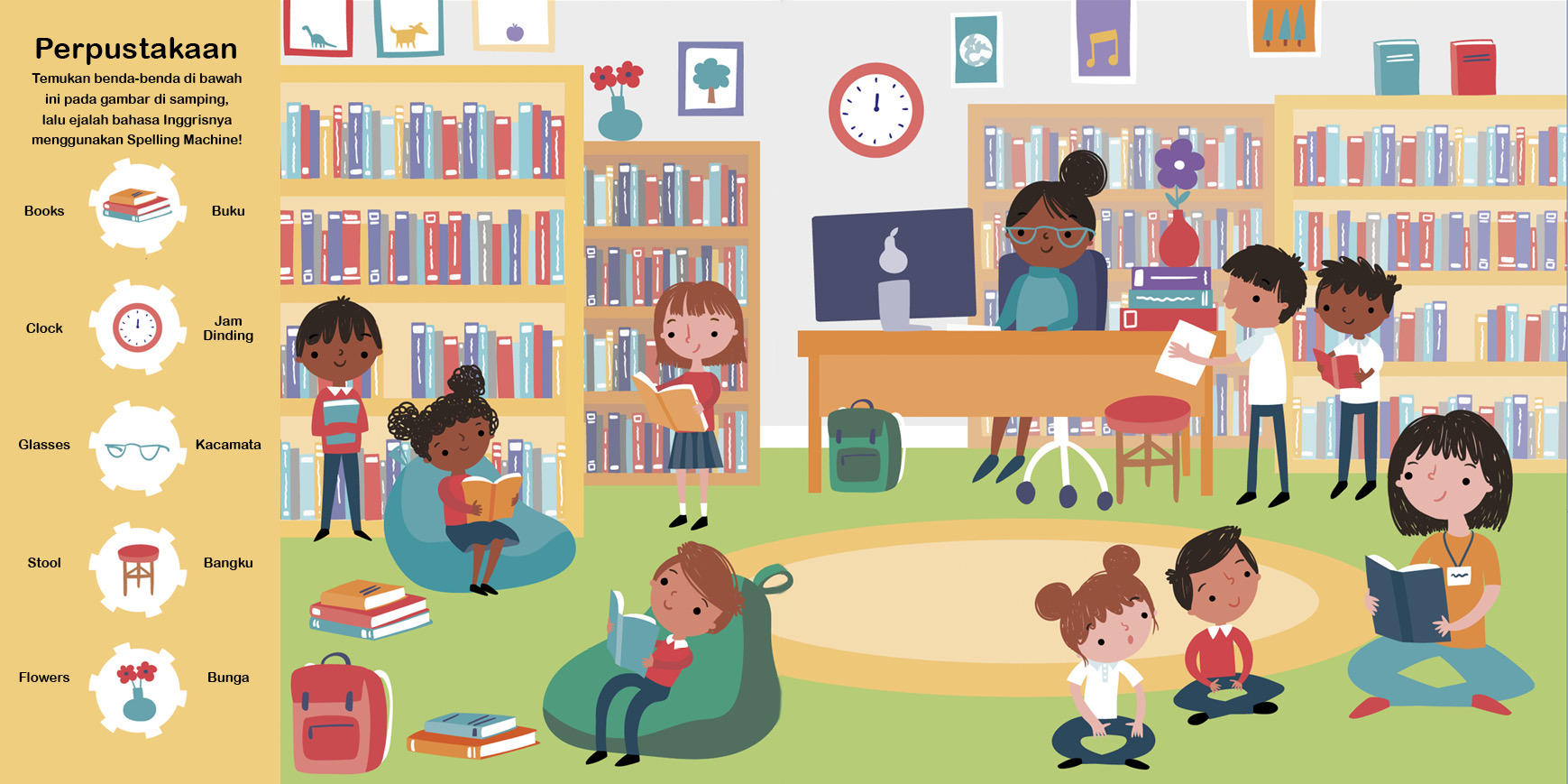 Buku ini dirancang khusus untuk membantu anak belajar mengeja kosakata dalam bahasa Inggris. Dengan Mesin Mengeja Ajaib (Spelling Machine), anak akan sangat terbantu dalam mengembangkan kemampuan mengeja dan membaca.