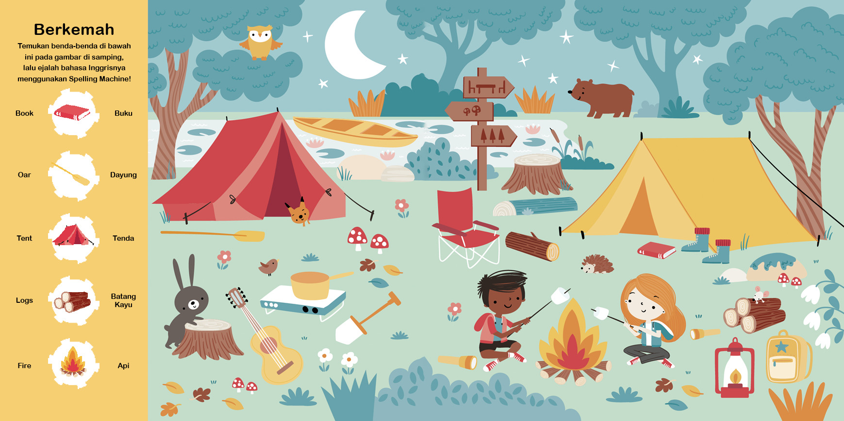 Buku ini dirancang khusus untuk membantu anak belajar mengeja kosakata dalam bahasa Inggris. Dengan Mesin Mengeja Ajaib (Spelling Machine), anak akan sangat terbantu dalam mengembangkan kemampuan mengeja dan membaca.