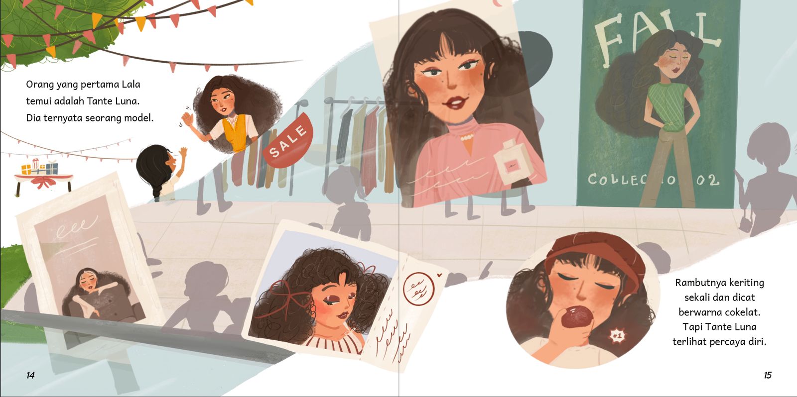 latihan sepatu roda. Lala merengek agar Mama membawanya ke salon untuk meluruskan rambutnya. Tapi Mama dan Papa tidak setuju. Padahal minggu ini ada acara ulang tahun Via, sepupunya. Lala ingin tampil keren dan percaya diri. Di acara itu, Lala bertemu dengan para saudara yang sudah lama tidak dia temui. Lala bertemua Tante Luna, yang seorang model. Rambut Tante Luna juga keriting dan mengembang, sama seperti Lala! Lala juga bertemu beberapa saudara lain, termasuk Nenek, yang juga memiliki rambut yang sama seperti Lala. Tapi mereka semua percaya diri dan bahkan berprestasi. Lala pun memutuskan untuk mengabaikan teman-temannya dan percaya dengan dirinya sendiri.