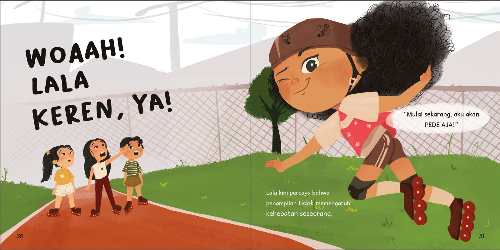 “Astaga, Lala! Kamu Seperti Singa! Hahaha.” Teman-teman Lala menertawai rambut Lala yang mengembang setelah latihan sepatu roda. Huh! Padahal kata Pelatih, Lala belajar dengan cepat dan bisa mengikuti kejuaraan antarsekolah. Namun, ledekan mereka membuat Lala tidak percaya diri.