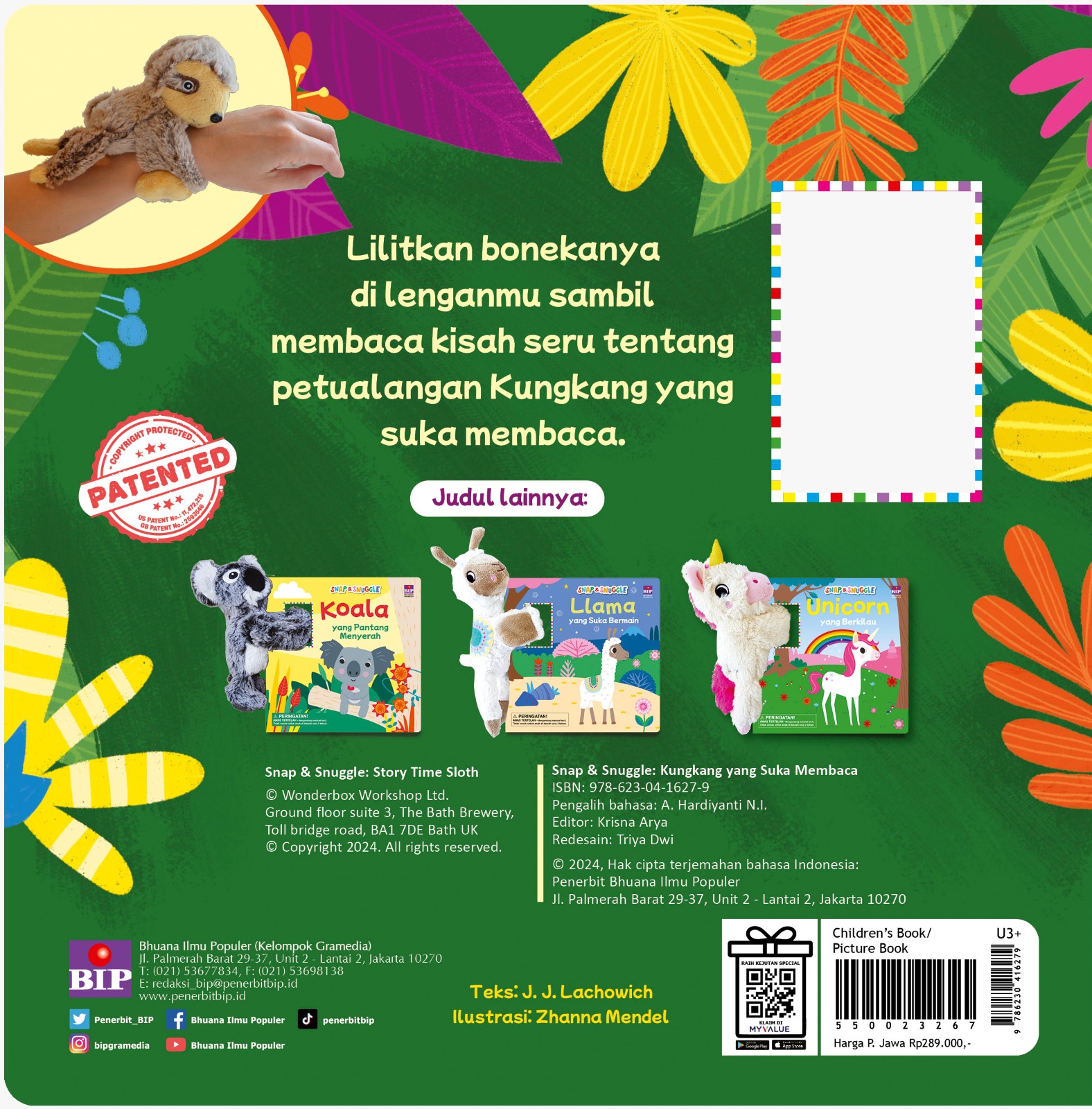 Lilitkan bonekanya di lenganmu sambil membaca kisah seru tentang Kungkang yang Suka Membaca.
