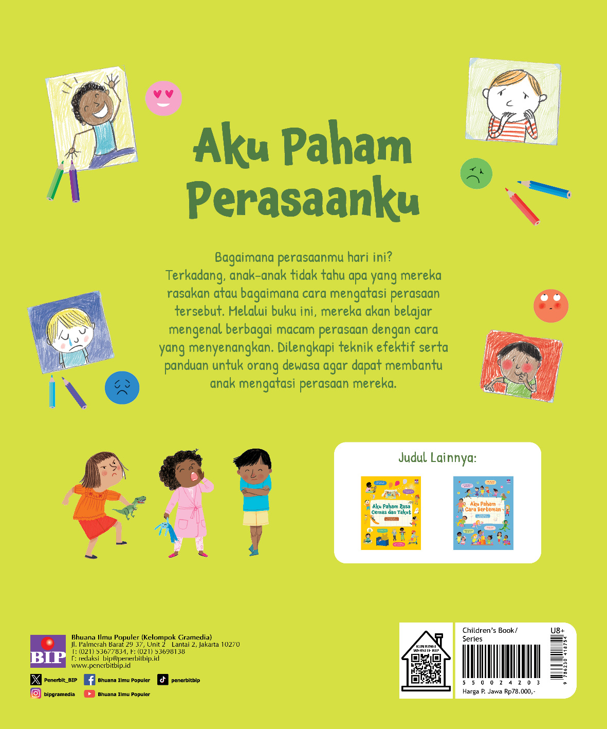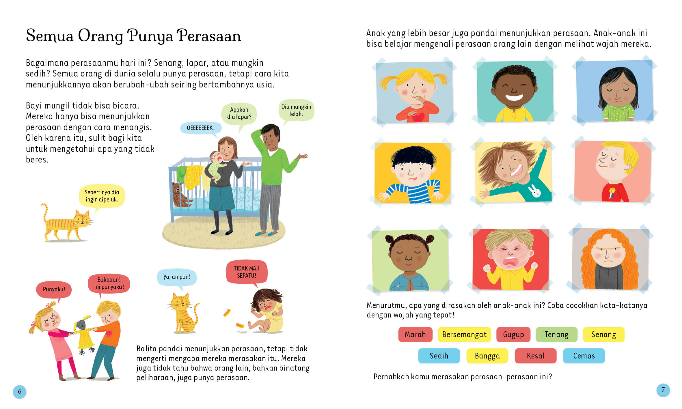 Terkadang, anak-anak tidak tahu apa yang mereka rasakan atau bagaimana cara mengatasi perasaan tersebut. Melalui buku ini, mereka akan belajar mengenal berbagai macam perasaan dengan cara yang menyenangkan. Dilengkapi juga dengan panduan untuk orang dewasa di akhir buku.
