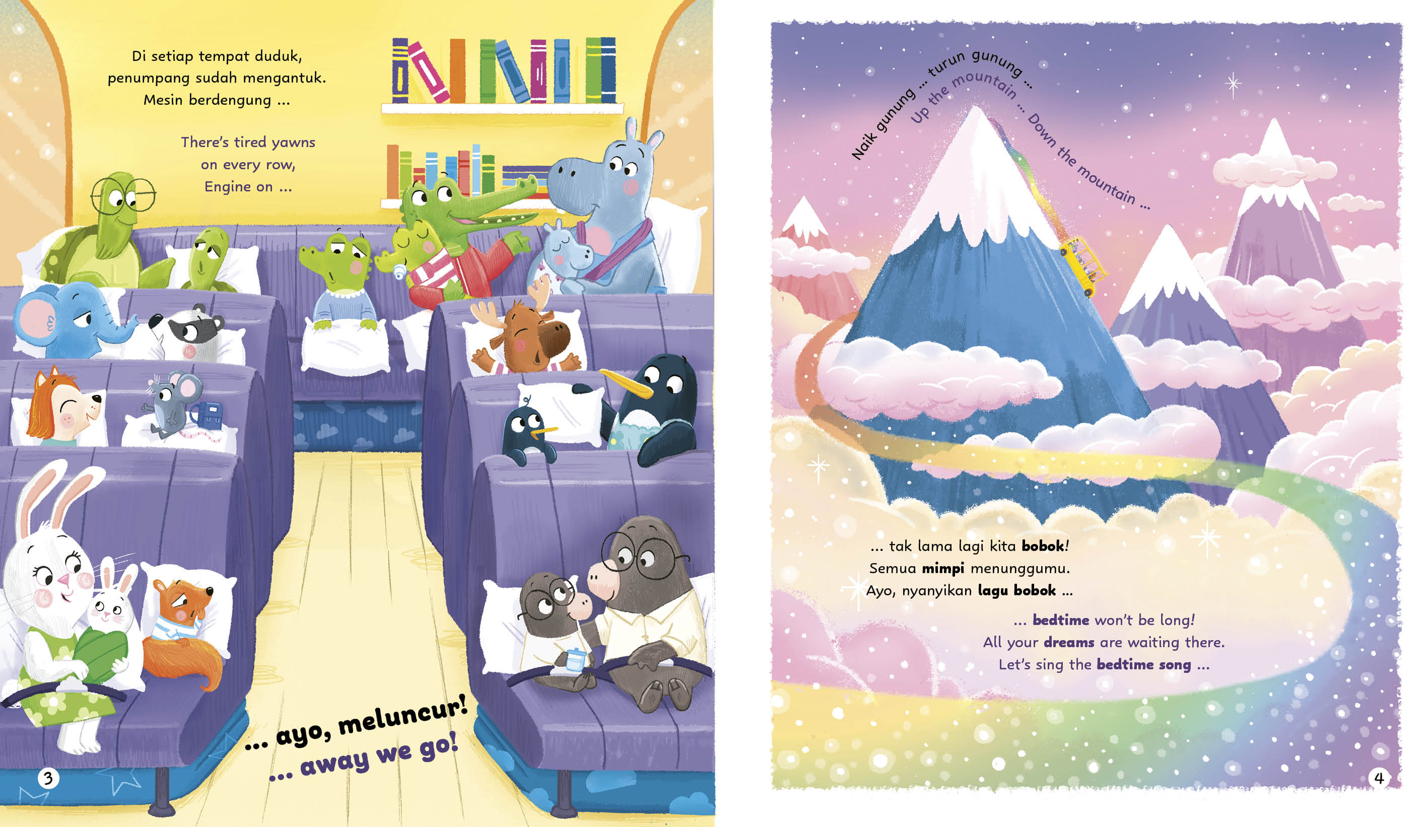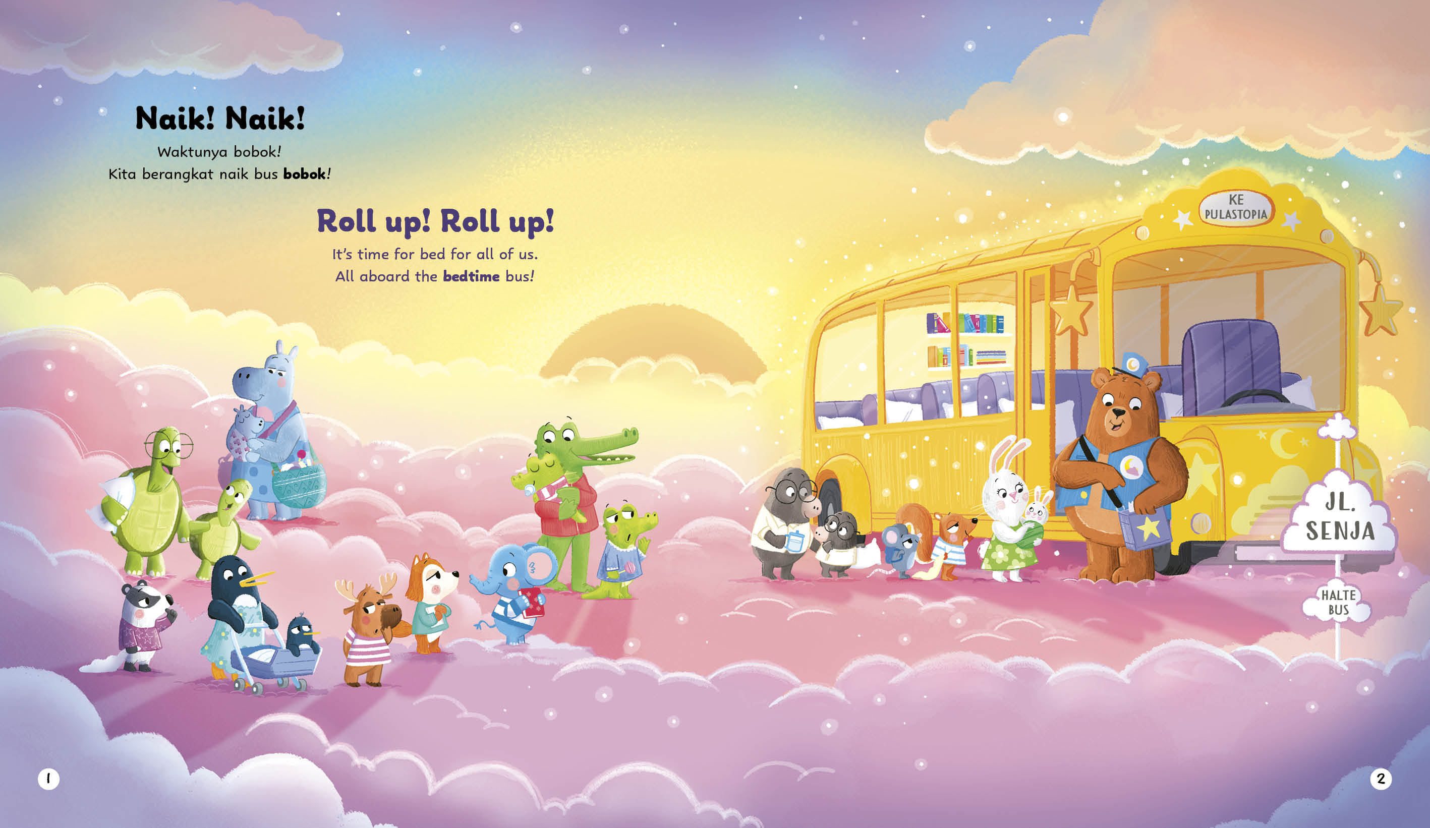 Hoaaam, anak-anak mulai mengantuk. Ayo, naik bus bobok yang lucu.