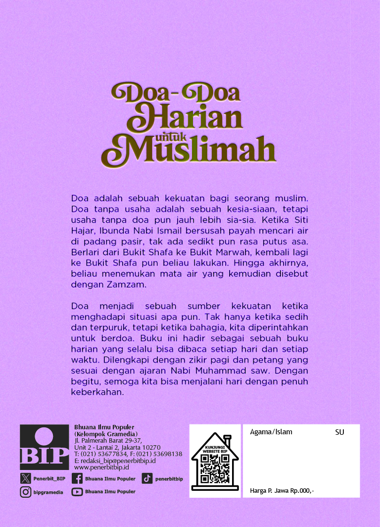 Doa adalah sebuah kekuatan bagi seorang muslim. Doa tanpa usaha adalah sebuah kesia-siaan, tetapi usaha tanpa doa pun jauh lebih sia-sia. Ketika Siti Hajar, Ibunda Nabi Ismail bersusah payah mencari air di padang pasir, tak ada sedikt pun rasa putus asa. Berlari dari Bukit Shafa ke Bukit Marwah, kembali lagi ke Bukit Shafa pun beliau lakukan. Hingga akhirnya, beliau menemukan mata air yang kemudian disebut dengan Zamzam. Doa menjadi sebuah sumber kekuatan ketika menghadapi situasi apa pun. Tak hanya ketika sedih dan terpuruk, tetapi ketika bahagia, kita diperintahkan untuk berdoa. Buku ini hadir sebagai sebuah buku harian yang selalu bisa dibaca setiap hari dan setiap waktu. Dilengkapi dengan zikir pagi