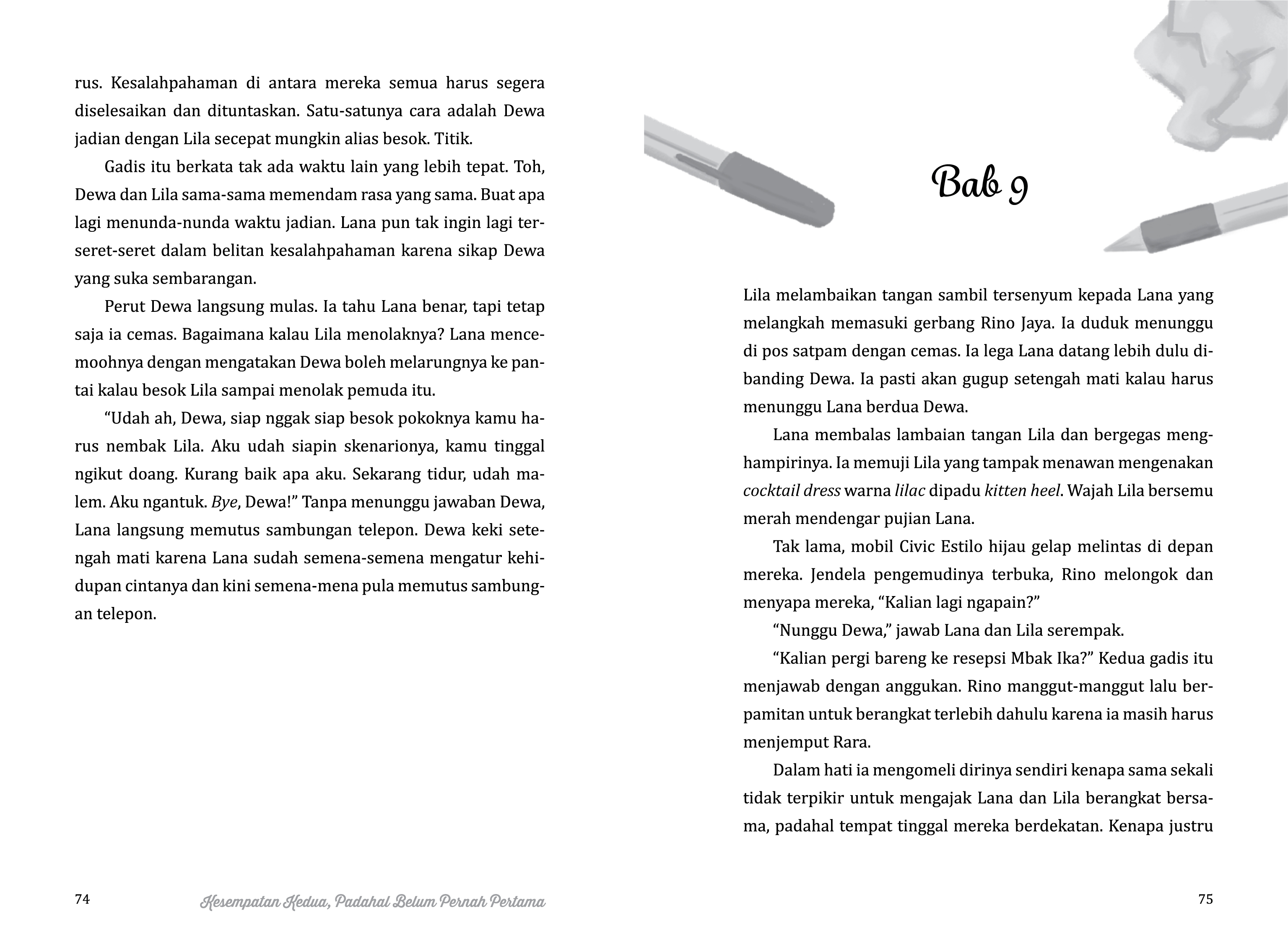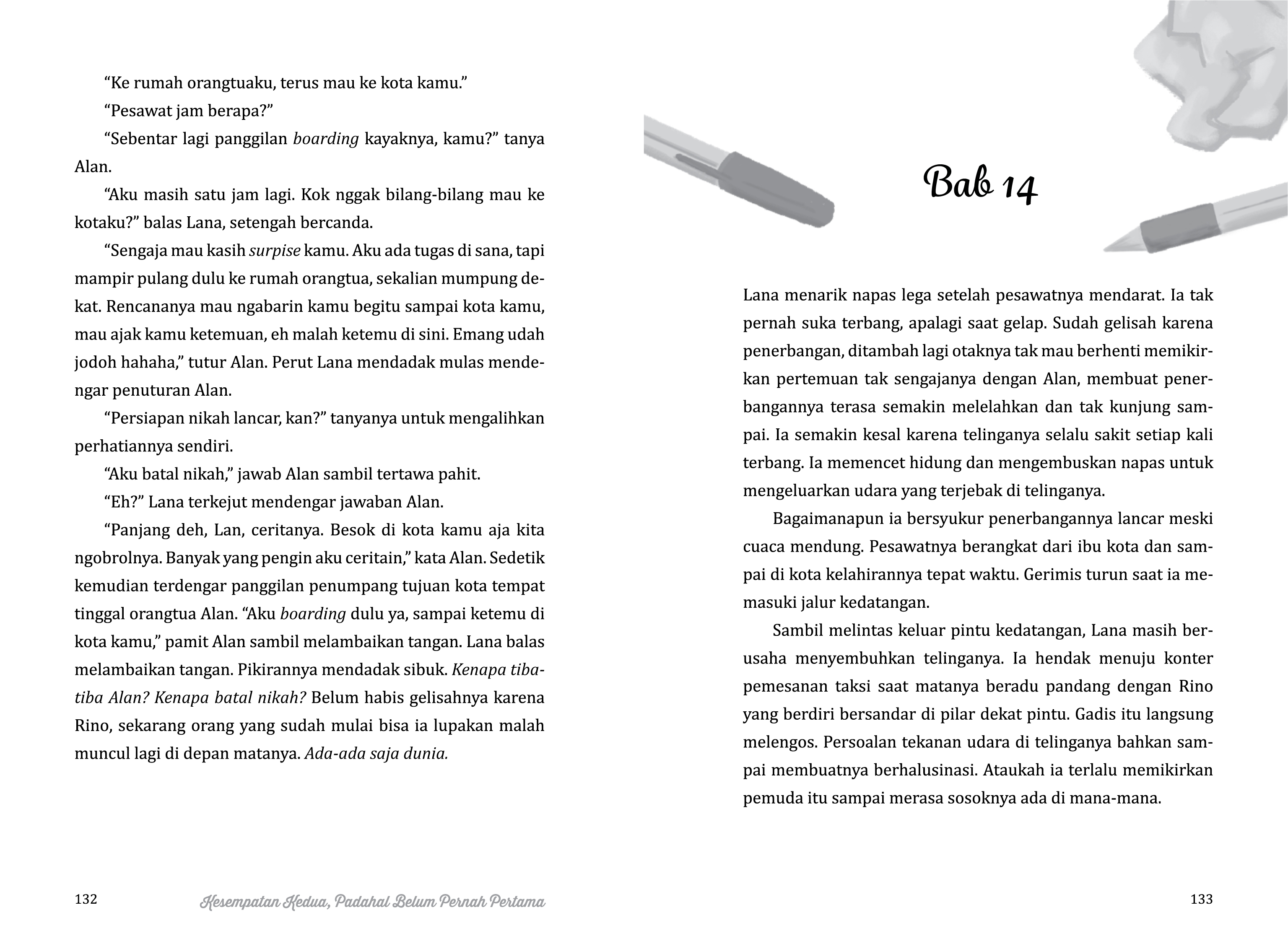 “Cieee, Lanaaa,” sontak teman-temannya berteriak heboh. Anak-anak kelas lain bersatu padu menatap ke arah mereka. Saat itu sedang jam istirahat siang. Bukan hanya Lana dan teman-temannya yang sedang duduk-duduk di bangku depan kelas, melainkan juga anak-anak kelas lain. Ingin rasanya Lana punya ilmu ninja untuk menghilang dari pandangan orang-orang.