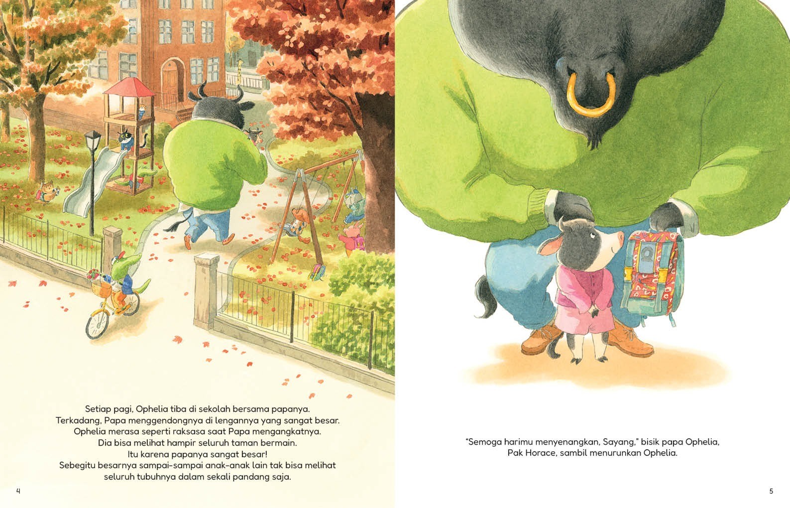 Setiap pagi Ophelia diantar papanya ke sekolah.