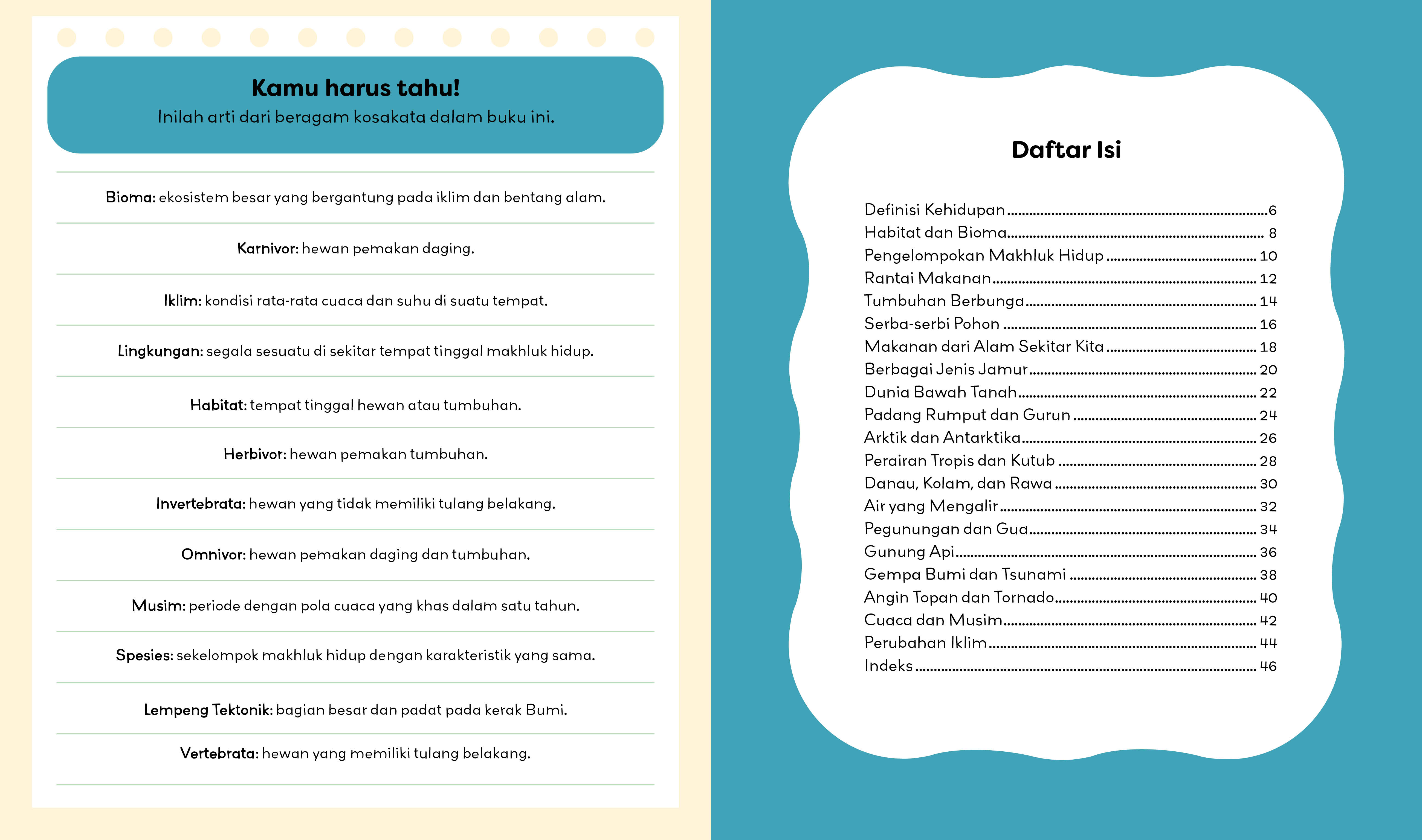 Dari makhluk hidup mikroskopis dan predator puncak yang ganas, hingga kondisi iklim Bumi dan fenomena alam yang sering dijumpai, buku ini membahas semuanya dengan cara yang menyenangkan.